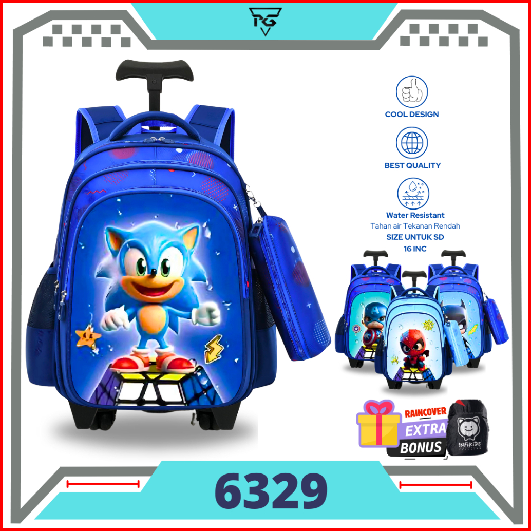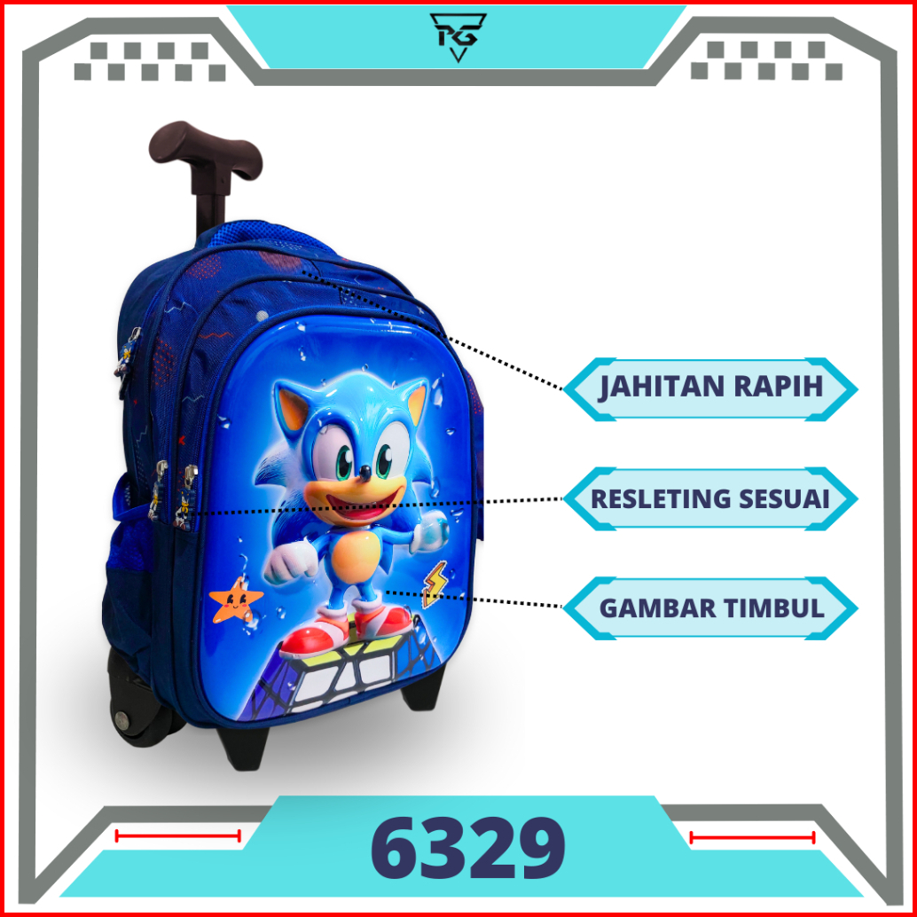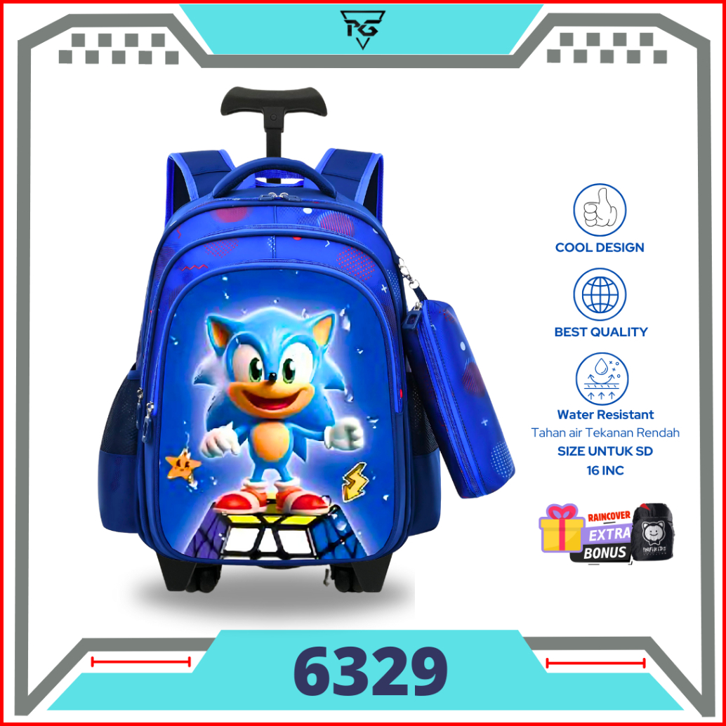 Troli Sekolah Anak Laki Laki Sd Gambar Sonic Timbul Tas Koper Anak Cowok 6329 Backpack Sekolah
