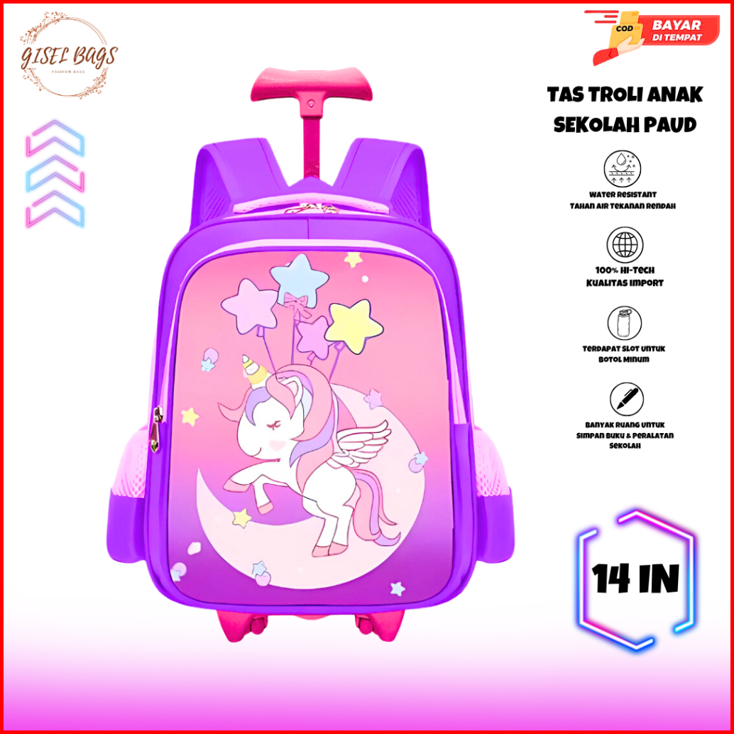 Gb Tas Ransel Troli Anak Perempuan Tk Tas Sekolah Anak Timbul Bahan Tebal Tas Troli Anak Import