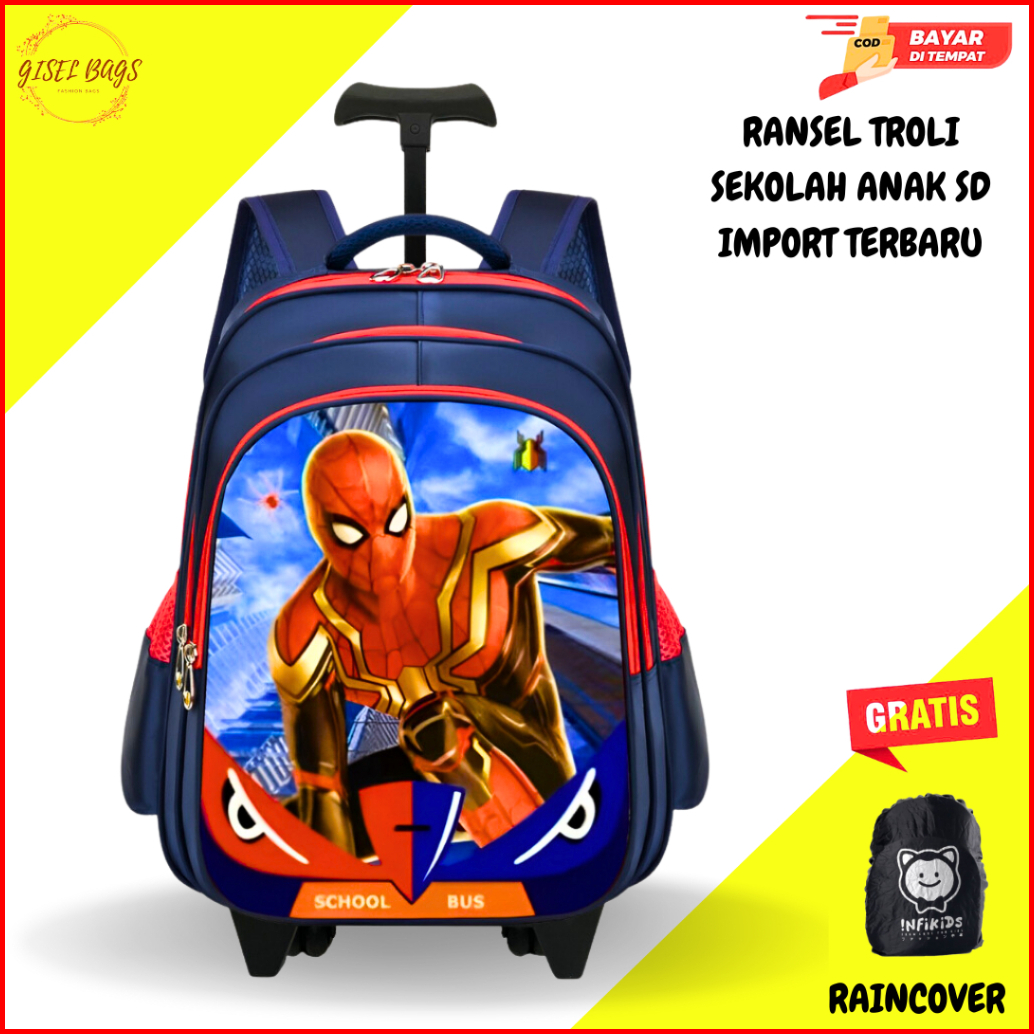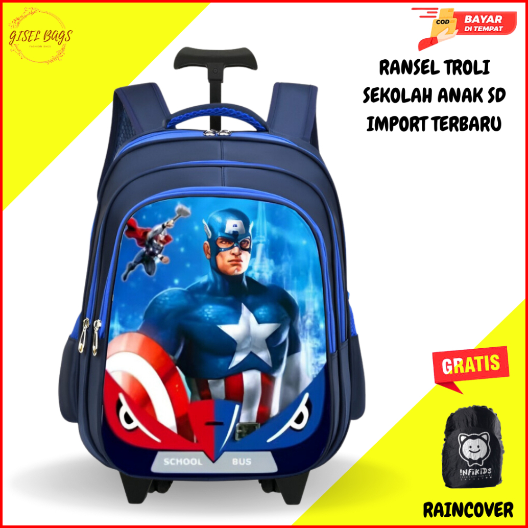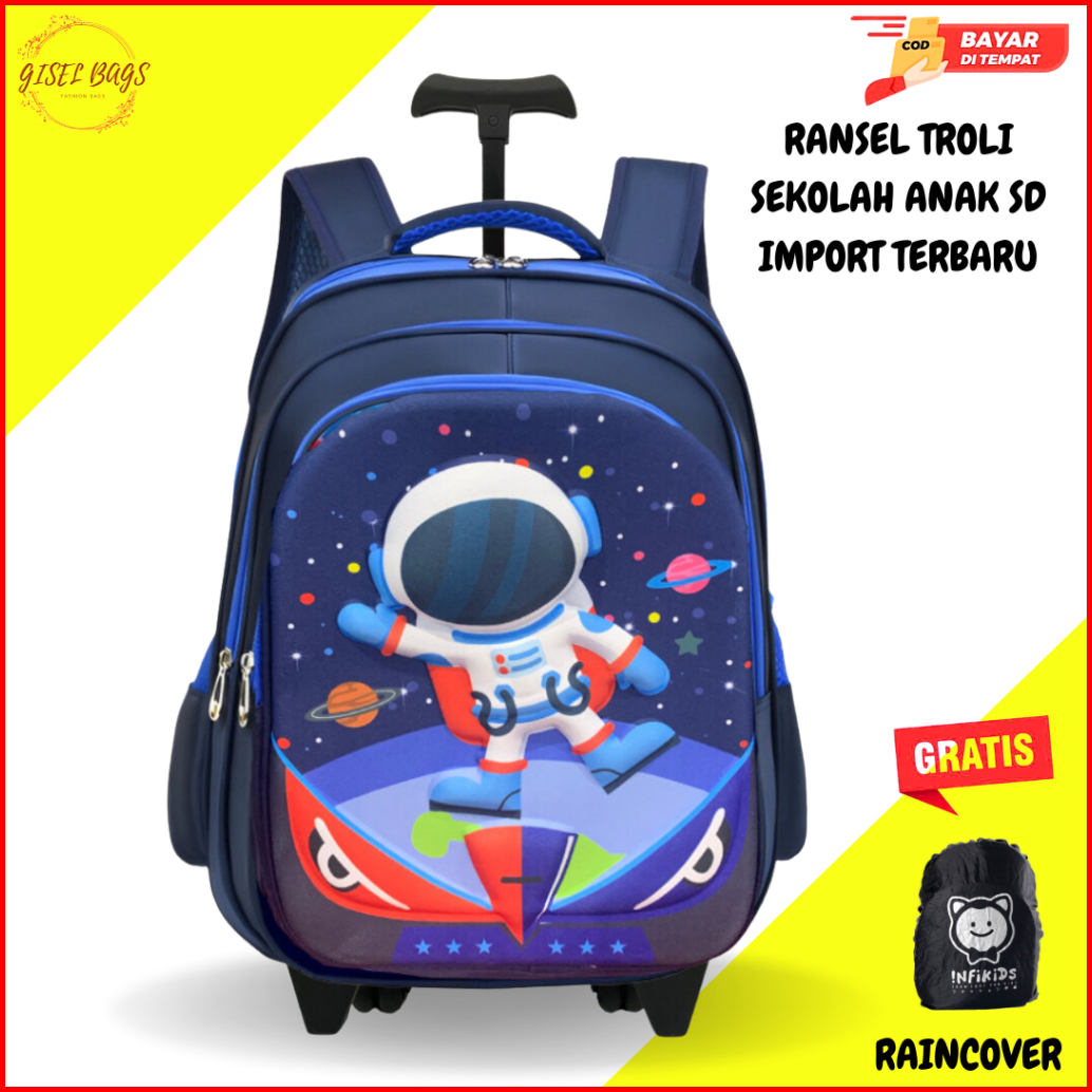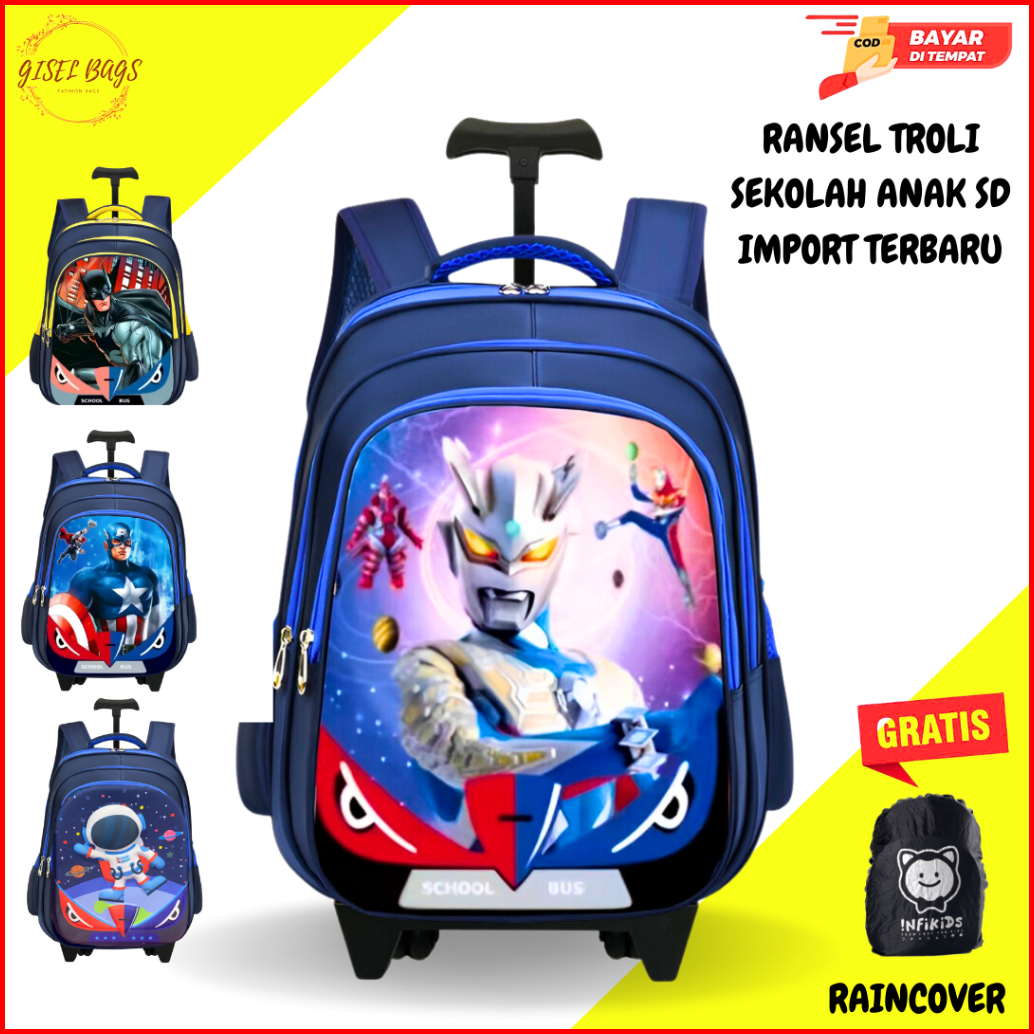 Tas Koper Dorong Anak Laki Laki Sd Import Gambar Timbul 3d Anti Air