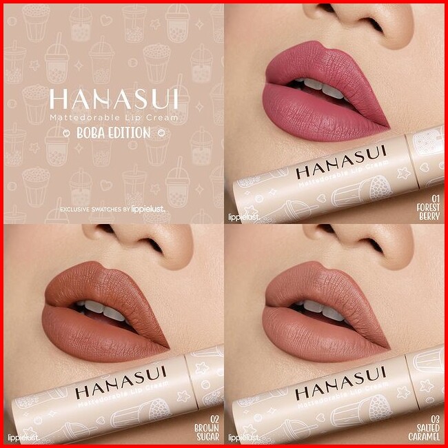 HNSUI 01 Kiss, HNSUI 02 Posh, HNSUI 03 Star, HNSUI 04 Chic, HNSUI 05 Classy, HNSUI 06 Ritz, HNSUI 07 Spark, HNSUI 08 Fancy, HNSUI 09 Fame, HNSUI 10 Allure, HNSUI 11 Brick, HNSUI 12 Amaze, HNSUI 13 Adore, HNSUI 14 Dusty, HNSUI 15 Flame, HNSUI 16 Glam, HNSUIBOBA_01_ForestB, HNSUIBOBA_02_SugarB, HNSUIBOBA_03_SaltedC, HNSUIBOBA_04_PinkLav, HNSUIBOBA_05CreamyP, HNSUIBOBA_06Hazelnut, HNSUI L.TINT 01Chery, HNSUI L.TINT 02Peach, HNSUI L.TINT 03Ruby, HNSUI L.TINT 04Sweet, HNSUI L.TINT 05Coral, HNSUI L.TINT 06Blood, HNSUI L.TINT 07Coper, HNSUI L.TINT 08Rosy, HNSUI L.TINT 09Dream, HANAMatcha_01MLicius, HANAMatcha_02MMallow, HANAMatcha_03MCiano, HANAMatcha_04MLover, HANAMatcha_05MBlend, HANAMatcha_06MChoco, GlazedVinyl_01NToday, GlazedVinyl_02YHoney, GlazedVinyl_03ThxYou, GlazedVinyl_04BlesMe, GlazedVinyl_05Specls, GlazedVinyl_06StayCl, Lipstick_110Cinnamon, Lipstick_111Peony, Lipstick_113Tropical, Lipstick_115Sandston, Lipstick_101Suprstar, Lipstick_103Sway, Lipstick_105Noona, Lipstick_107POP, Lipstick_118Retro, Lipstick_117Jazzy, HNS BOBA 02SugarB_FS