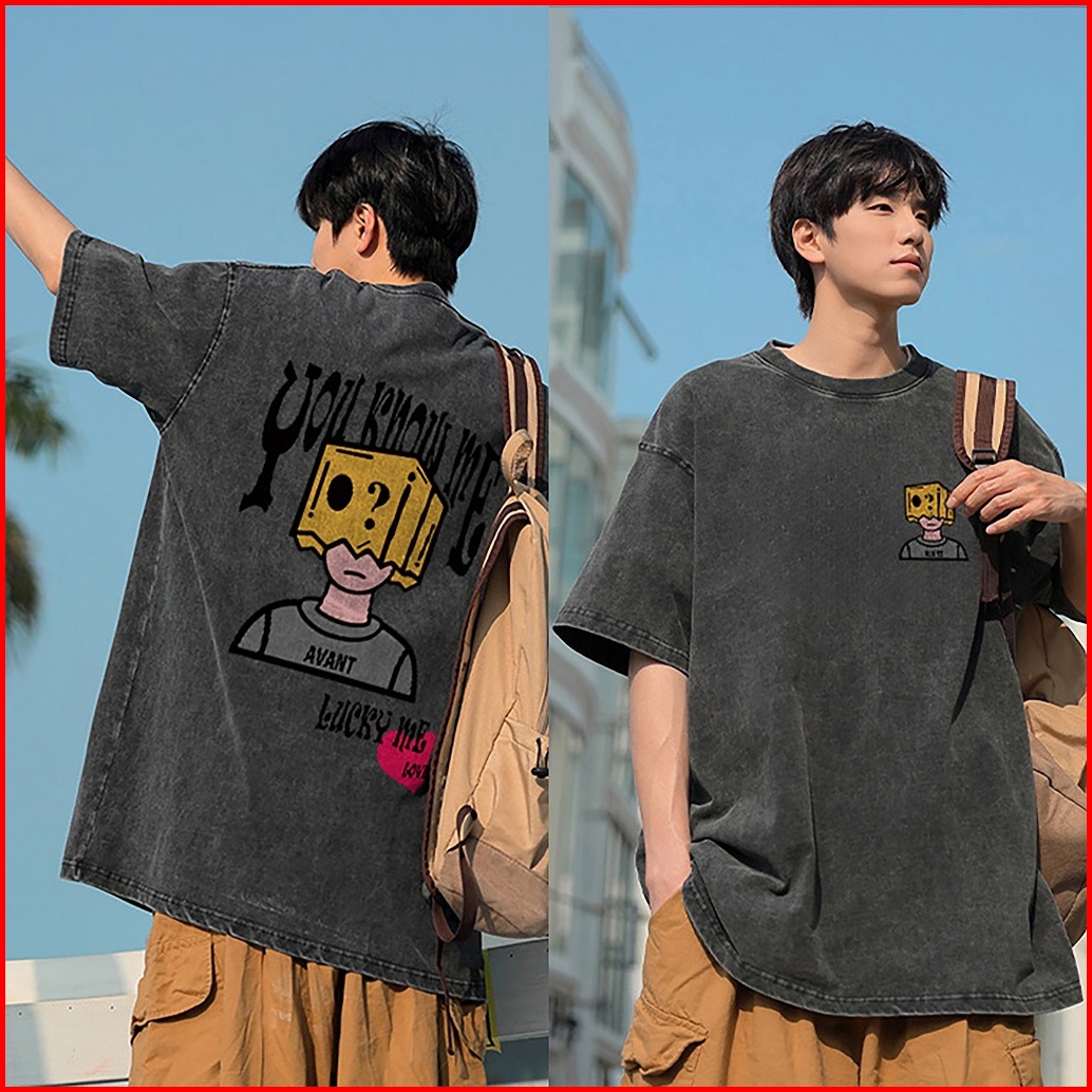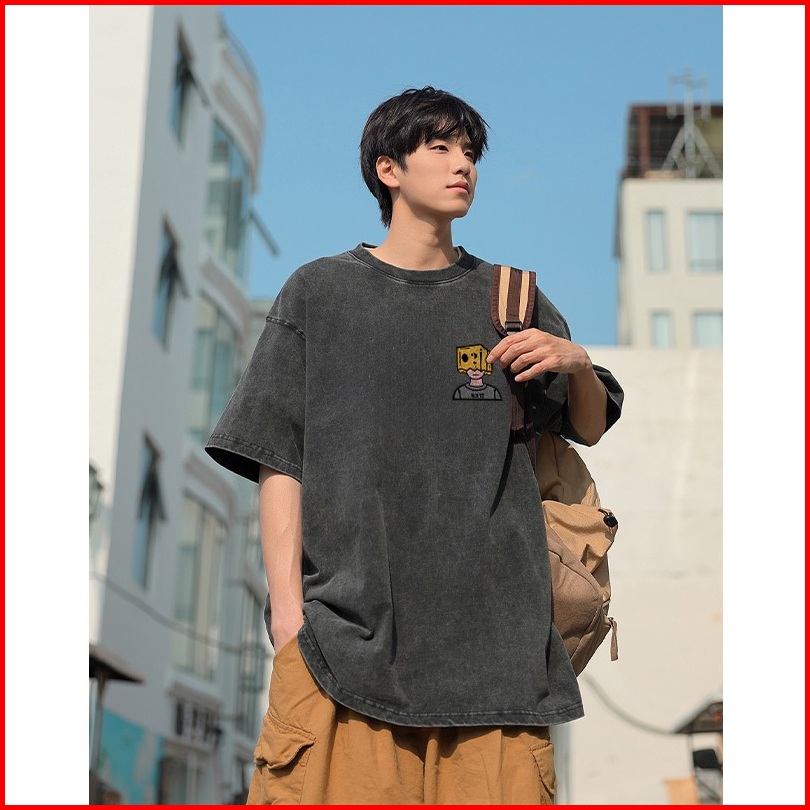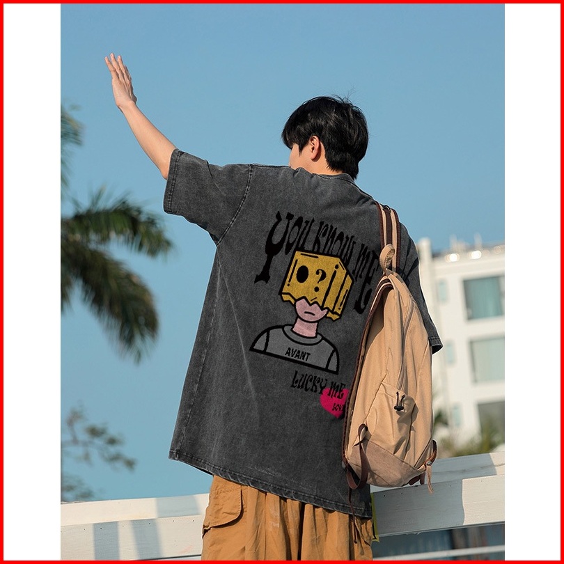 Puerto Washed Kaos Pria American Hip-hop Graffiti Box Boy Baju Oversize Pria Street Style T-shirt Atasan Premium Kaos Di