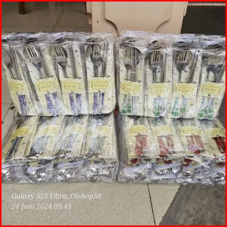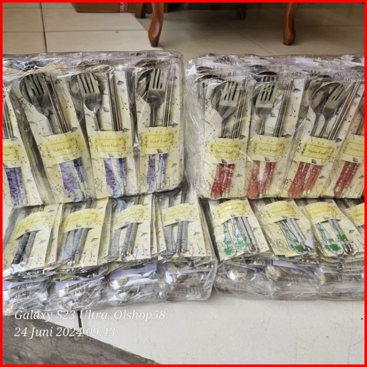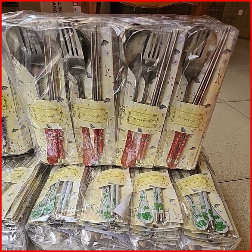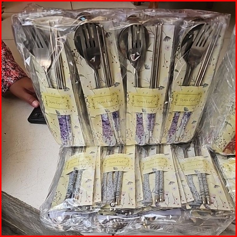 Isi 25set Sendok Garpu Sumpit Sakura Kemasan Kertas Alas Shabby