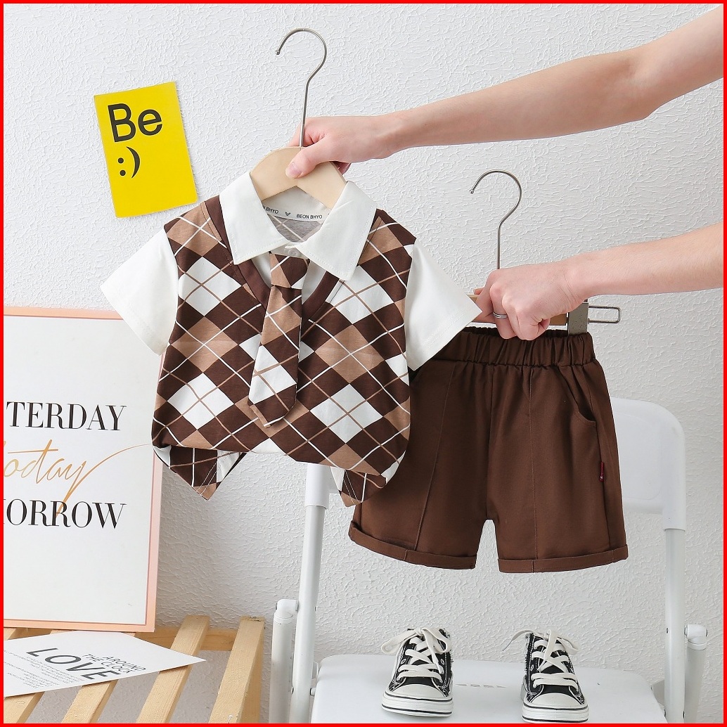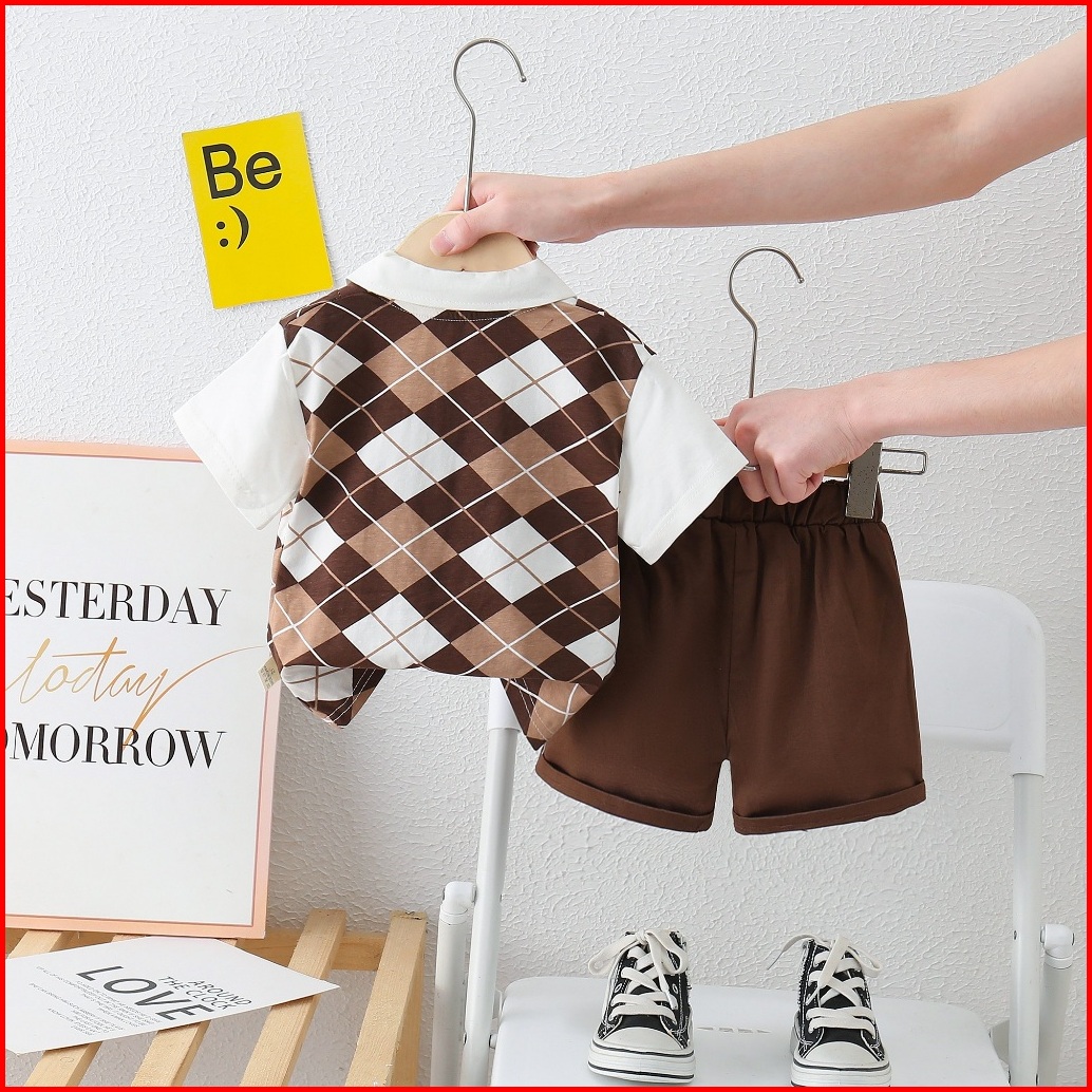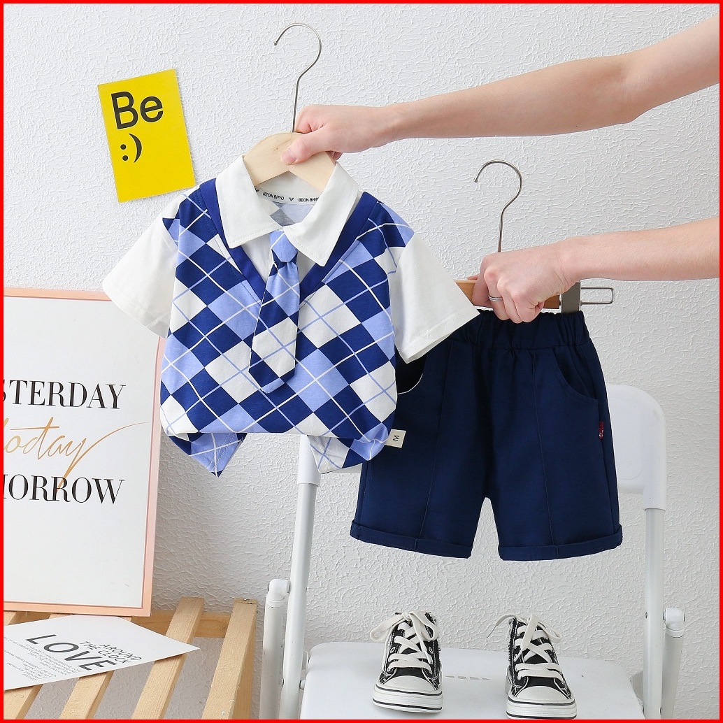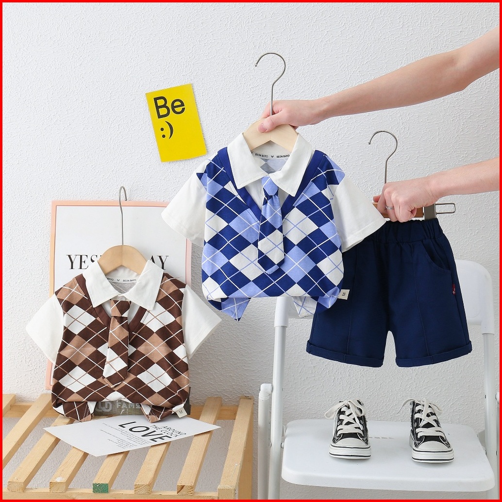Setelan Kaos Anak Laki Laki Import Stelan Kaos Lengan Pendek Motif Abstrak Anak Cowok Impor Setelan Kaos Dengan Dasi Dan