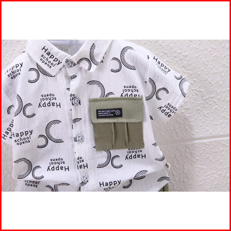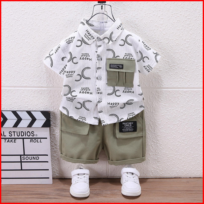 Setelan Kemeja Anak Laki Laki Import Stelan Baju Kemeja Lengan Pendek Anak Balita Impor Setelan 2pcs Kemeja Motif Celana