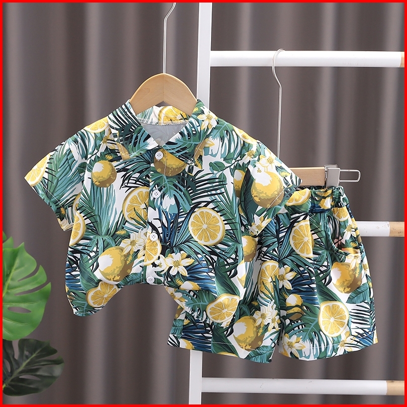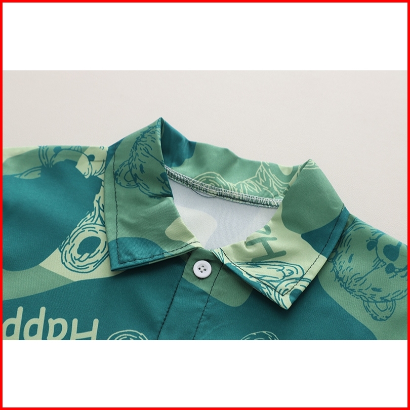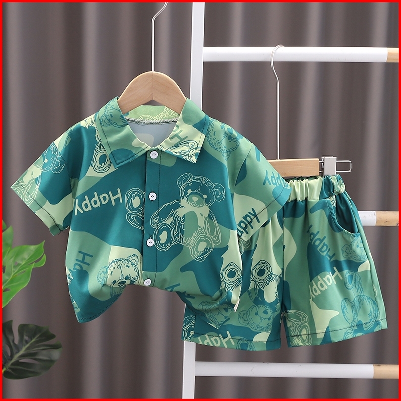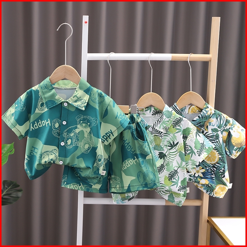 Setelan Kemeja Pantai Anak Laki Laki Import Stelan Kemeja Pantai Warna Hijau Anak Cowok Impor Setelan 2pcs Kemeja Dan Ce