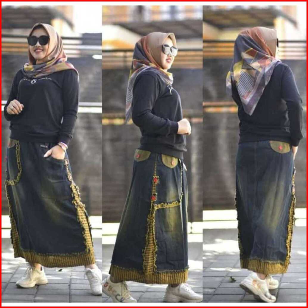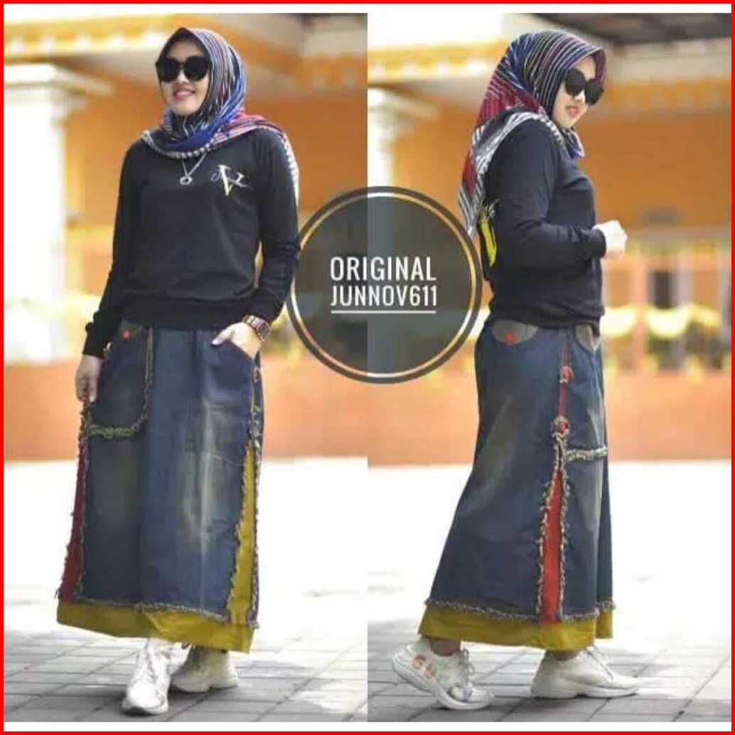 Rok Jeans Combinasi Junnov Terbaru 2024 All Size Xl