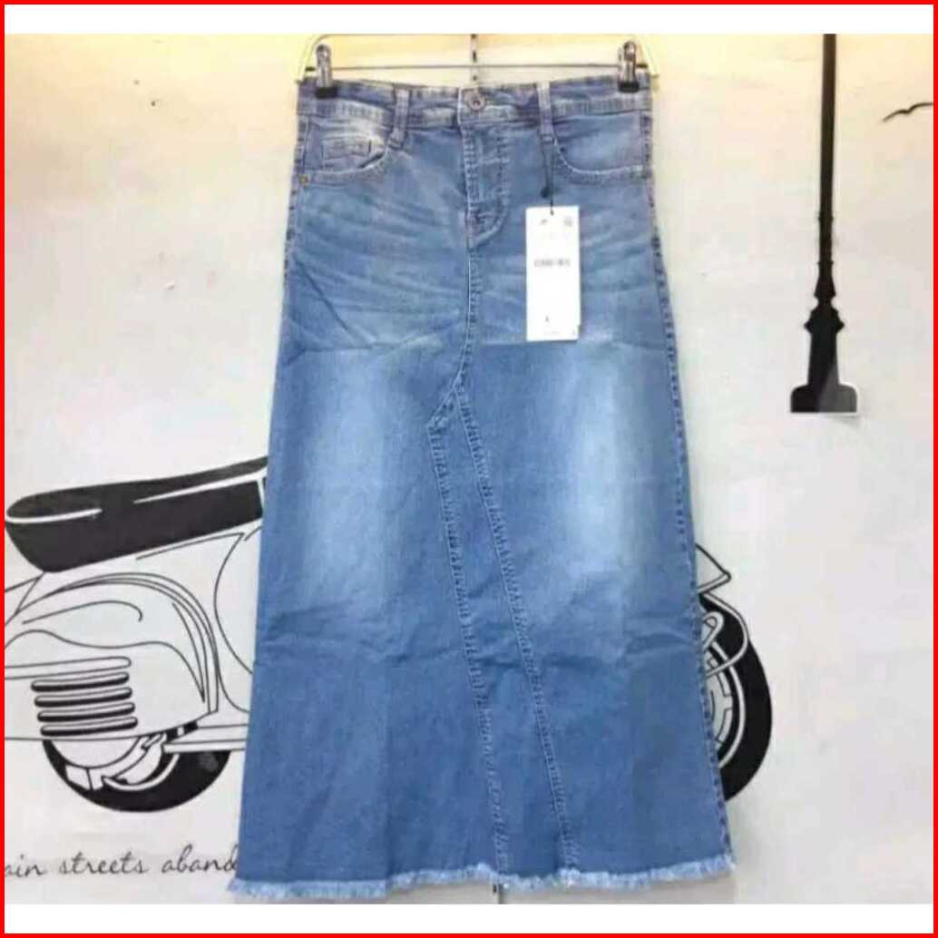 Rok Jeans Wash Sterch Panjang Kekinian Wanita Jeans Premium Rok Jeans Jumbo