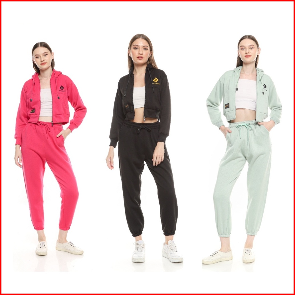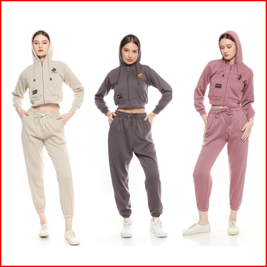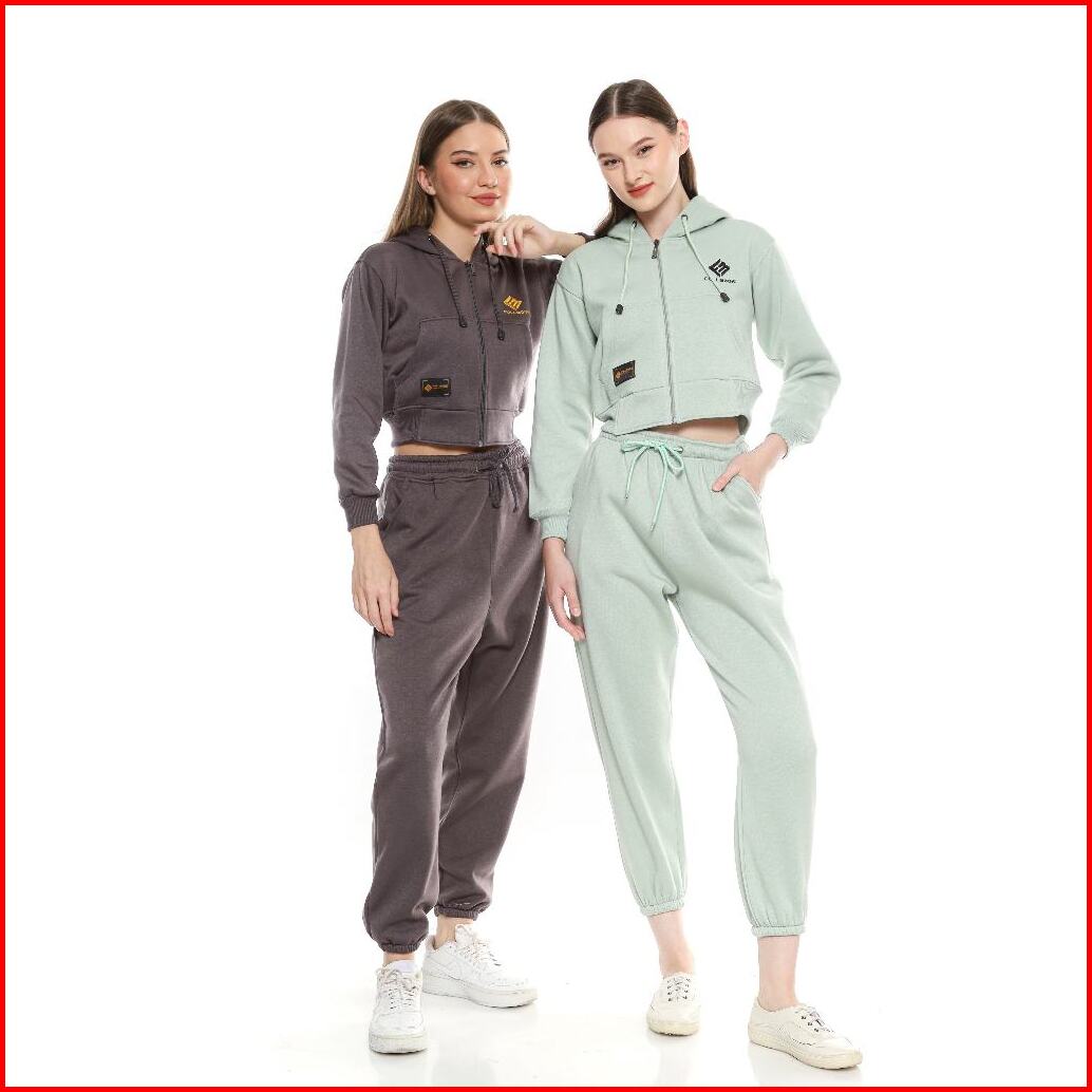 Stelan Crop Top Zipper Jogger Fullmoon Hoodie Bahan Tebal Full Bordir Orginal Distro Couple Cewek
