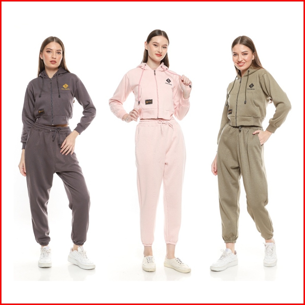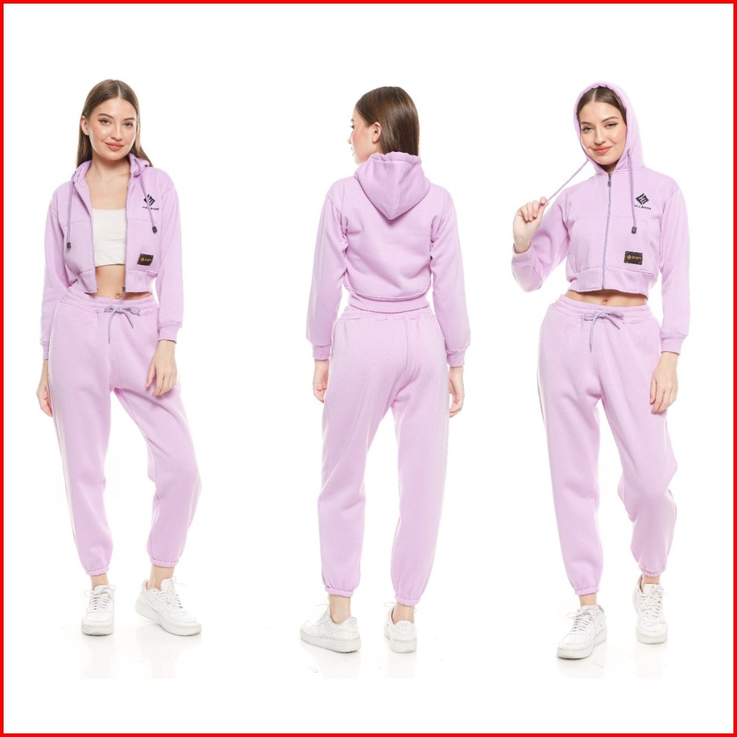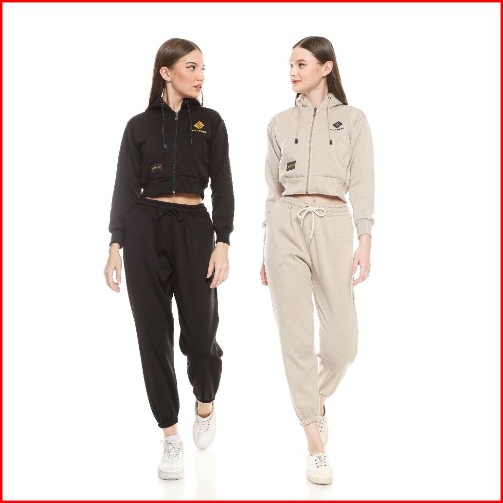 Stelan Crop Top Zipper Jogger Fullmoon Hoodie Bahan Tebal Full Bordir Orginal Distro Couple Cewek
