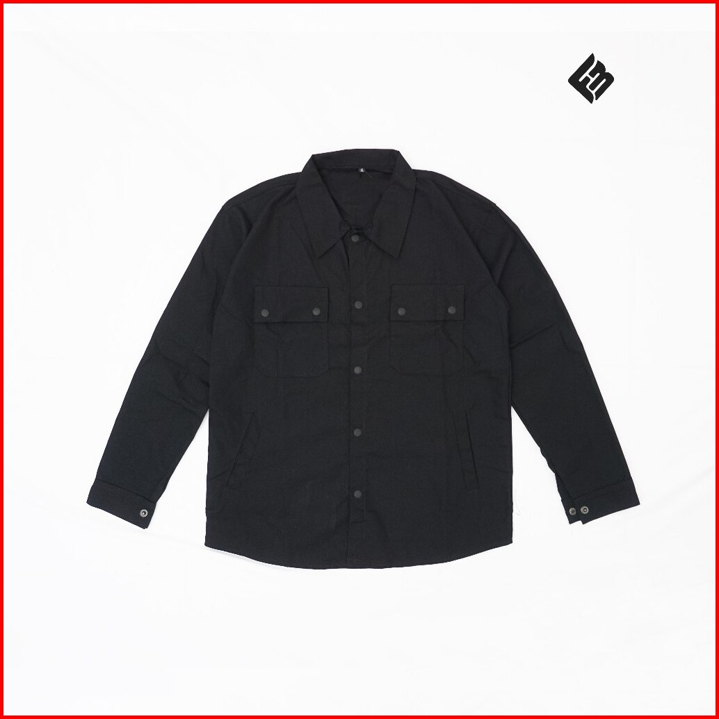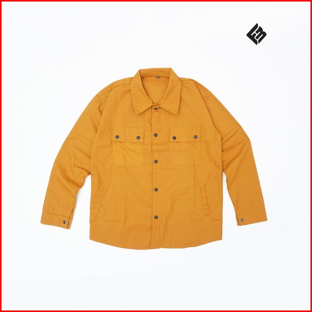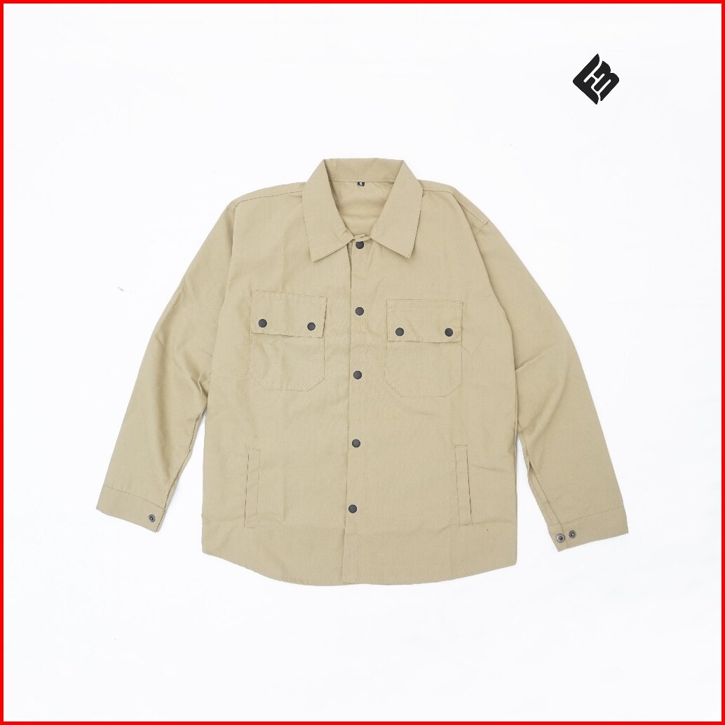 Kemeja Jacket Casual Semi Parka Trucker Canvas Pria Bahan Tebal Lembut