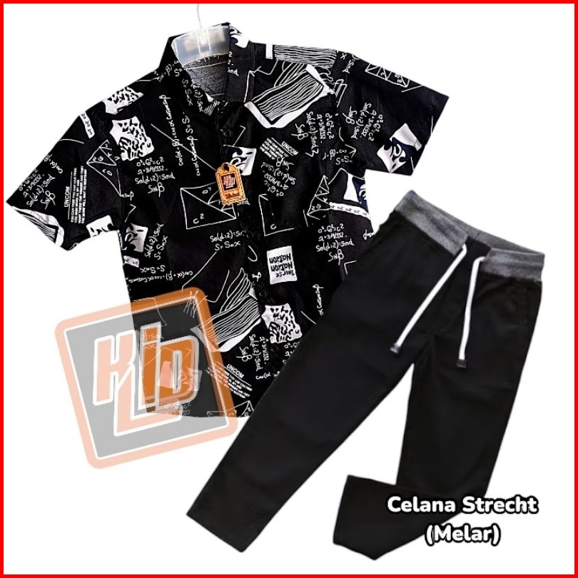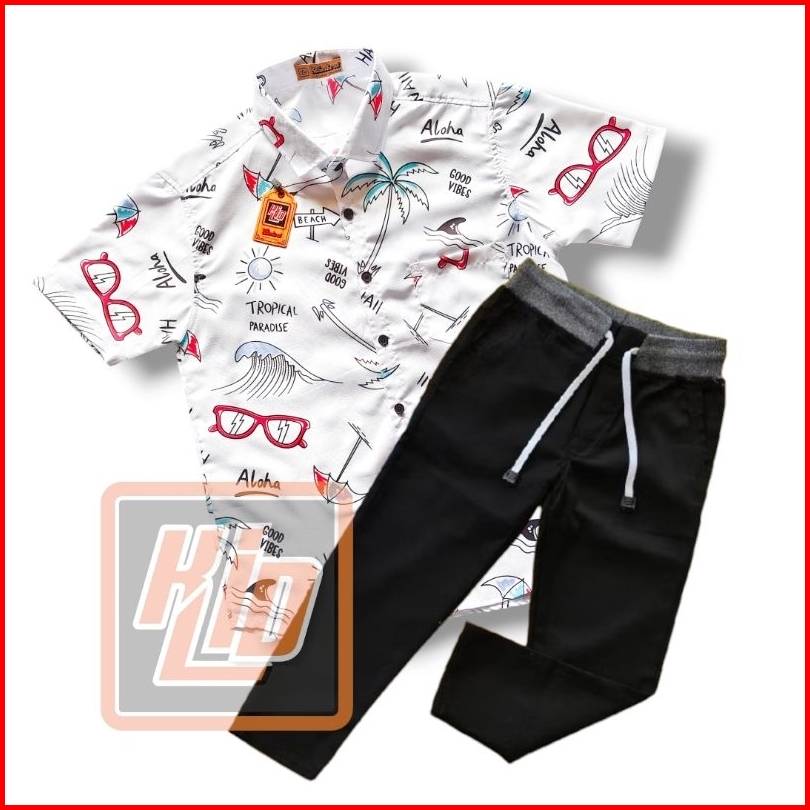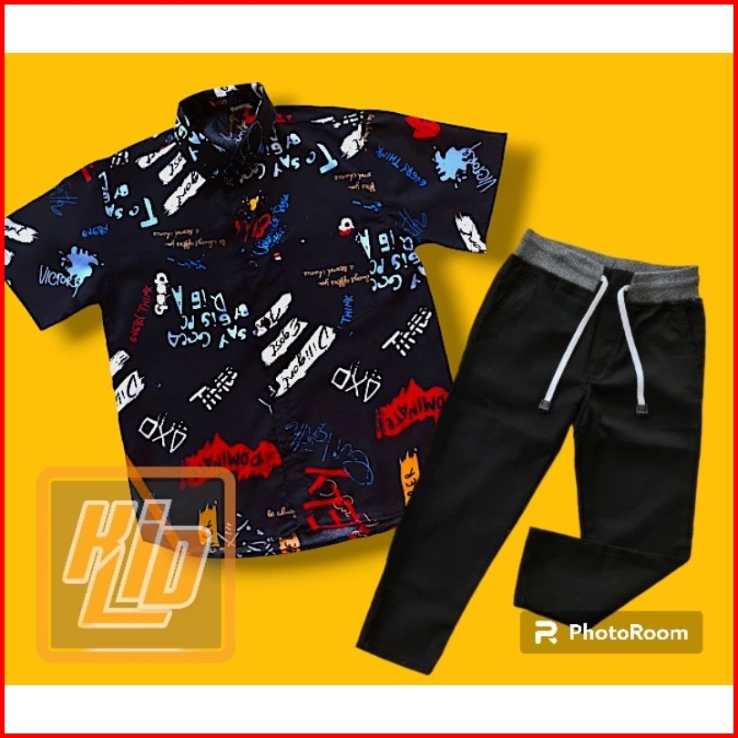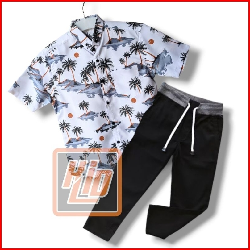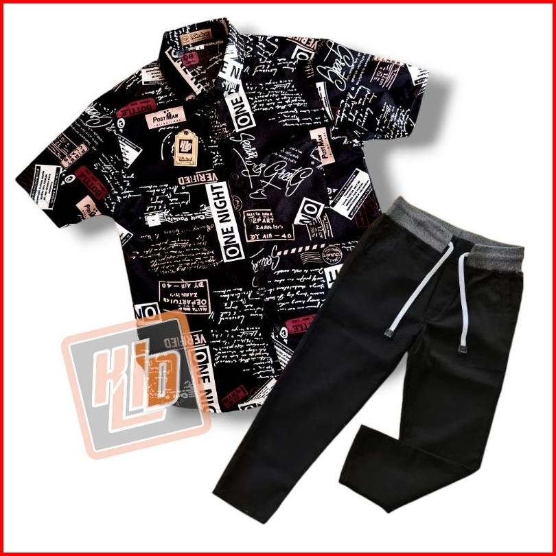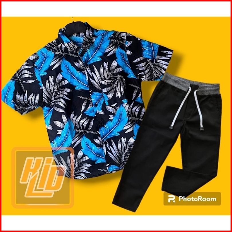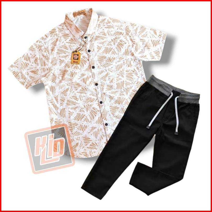 Pilih Setelan Kemeja Motif Lengan Pendek Keren Celana Chinos Panjang Anak Usia 2-12 Tahun Gratis Ongkir