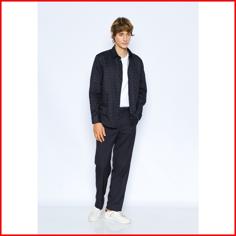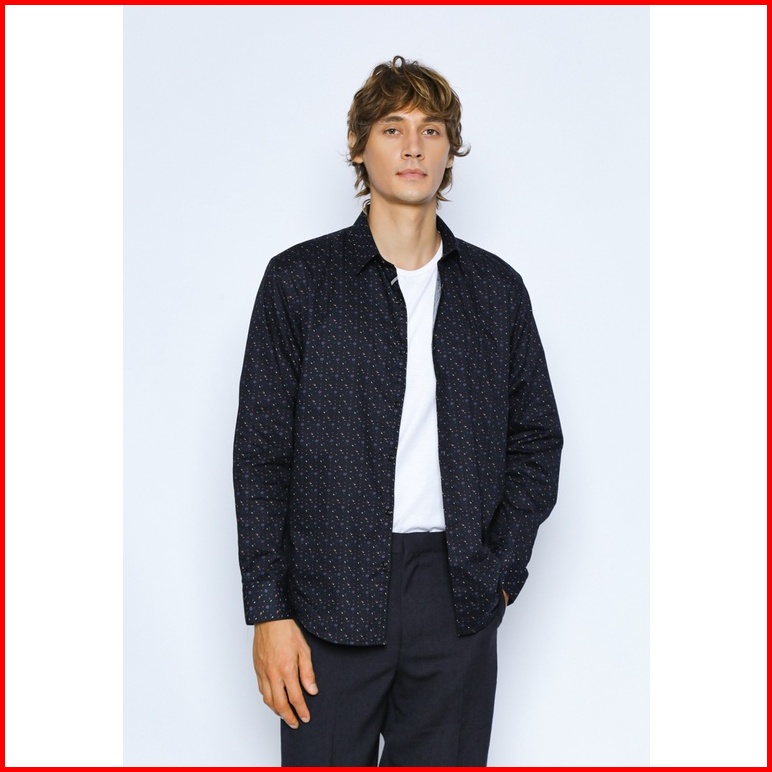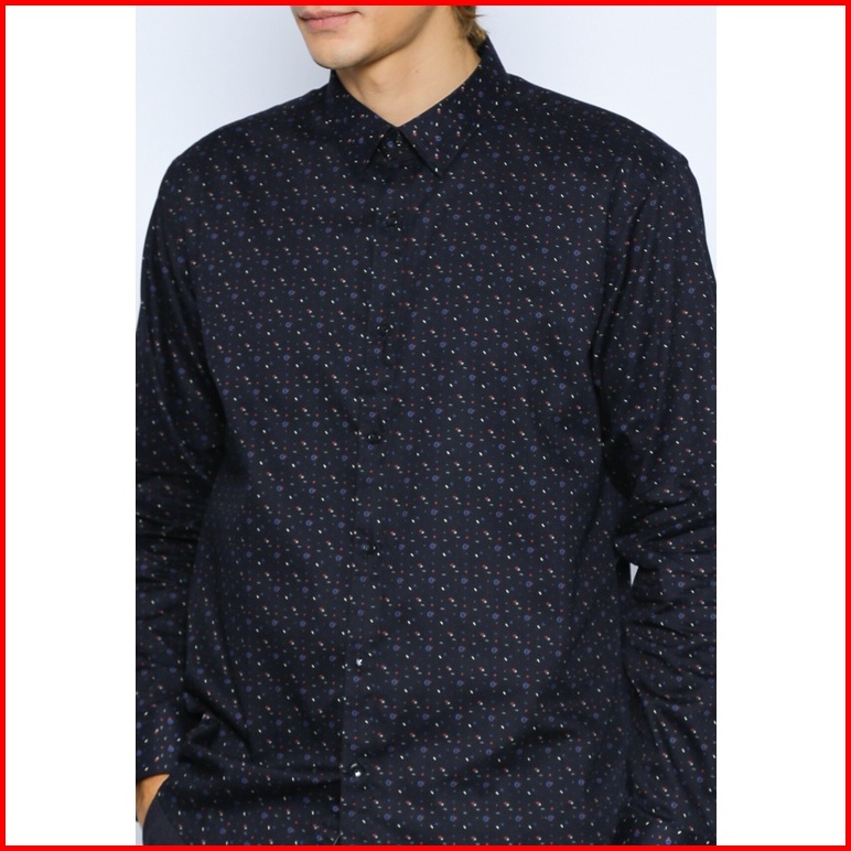 Valino Kemeja Lengan Panjang Pria Print Hitam - V-zgce02-o9