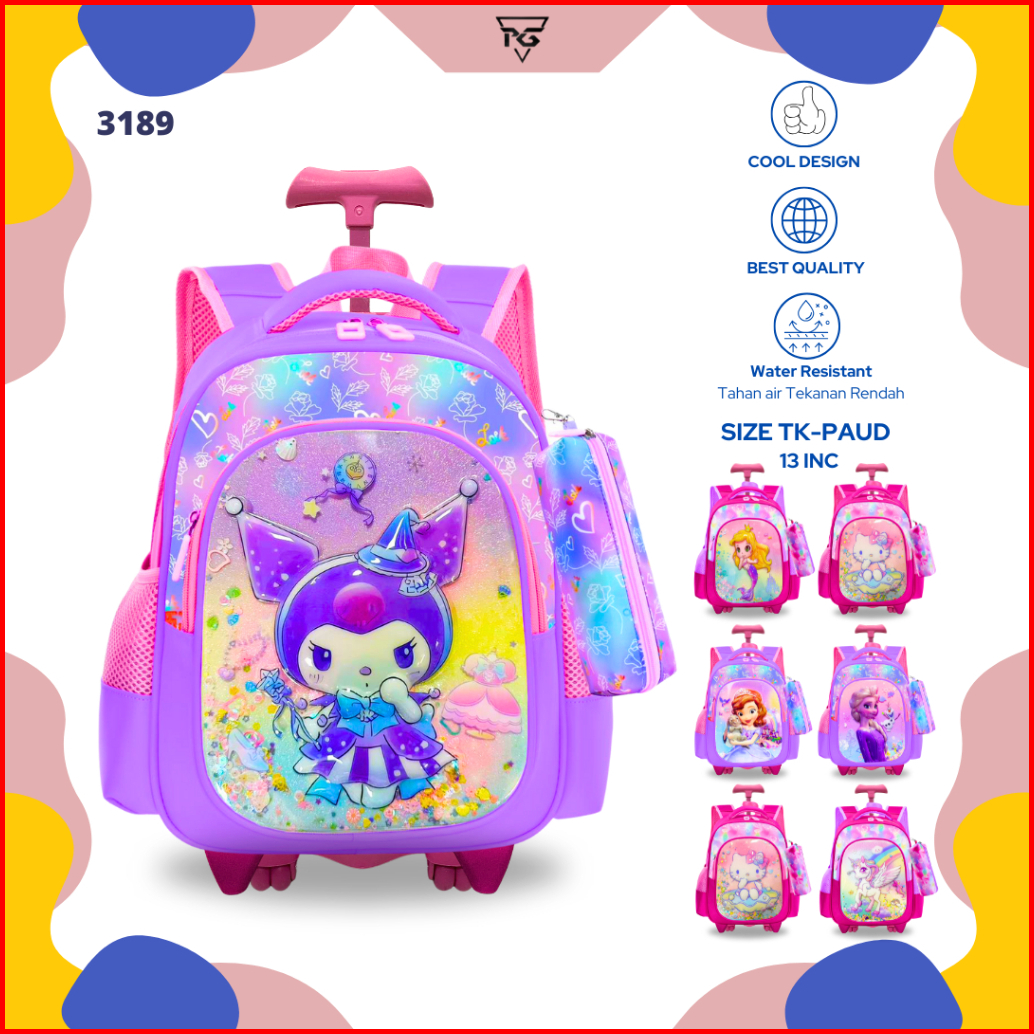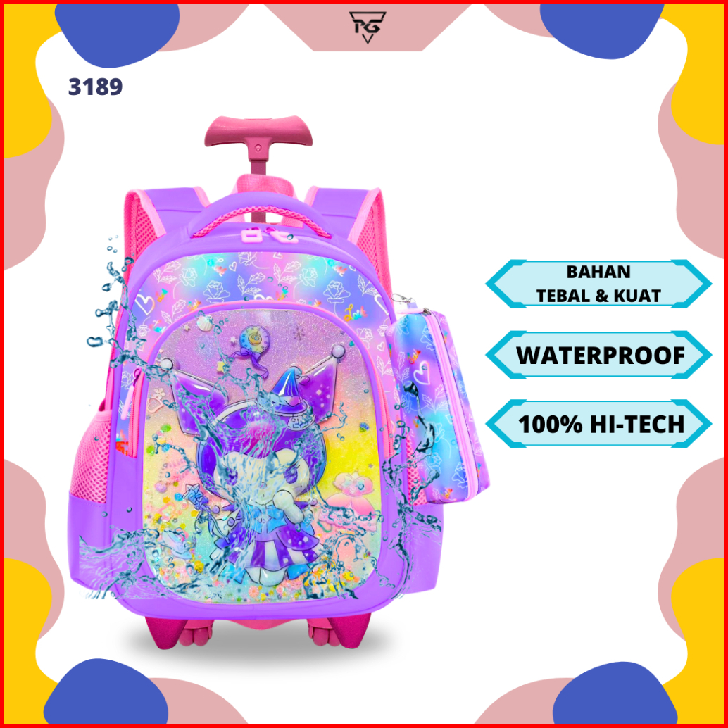 Troli Sekolah Anak Perempuan Gambar Timbul 3d Karakter Kuromi Tas Koper Anak Rpg 3189