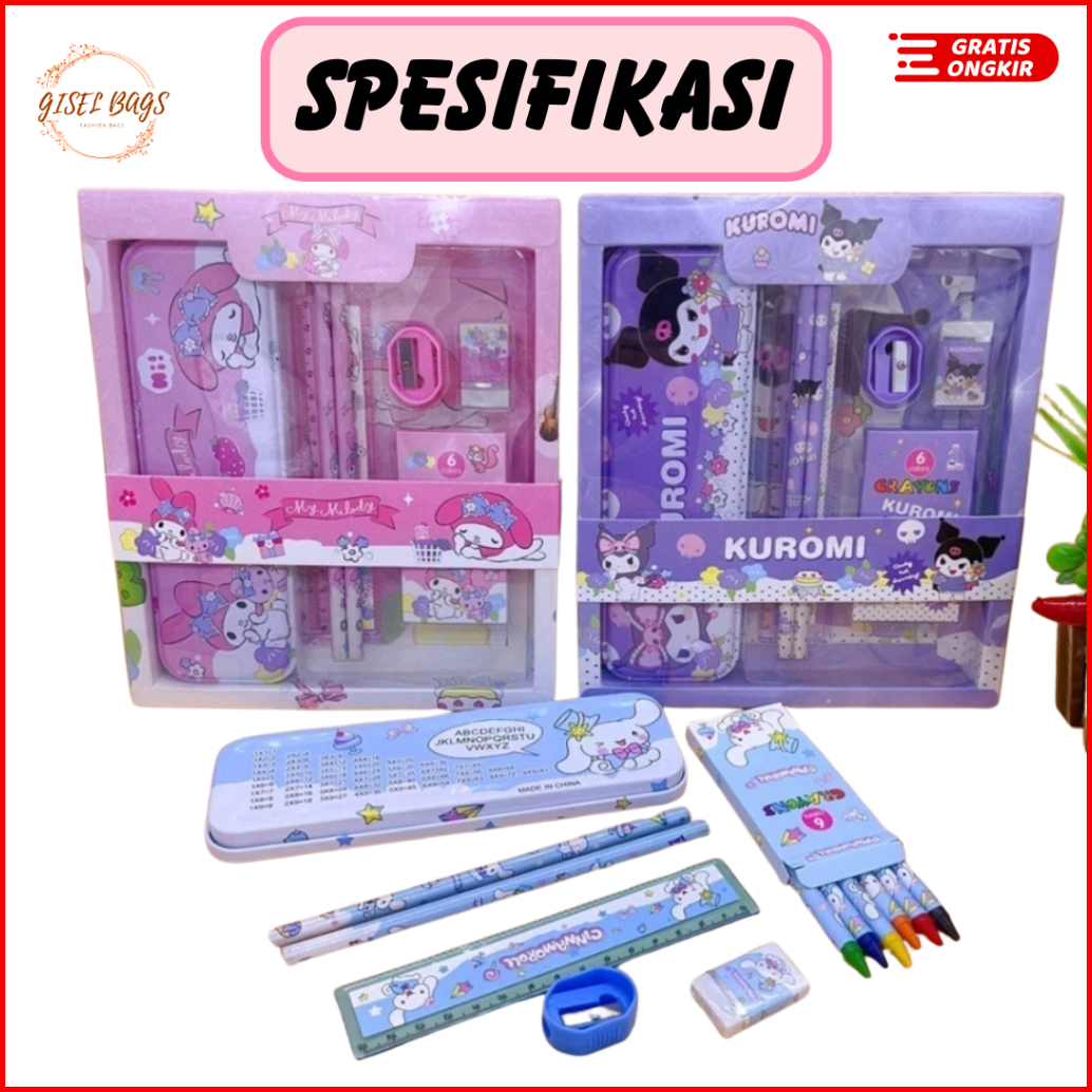 Set Alat Tulis Anak Perempuan Kotak Pensil Anak 6 In 1 Hadiah Kado Kotak Pen Karakter Stationery