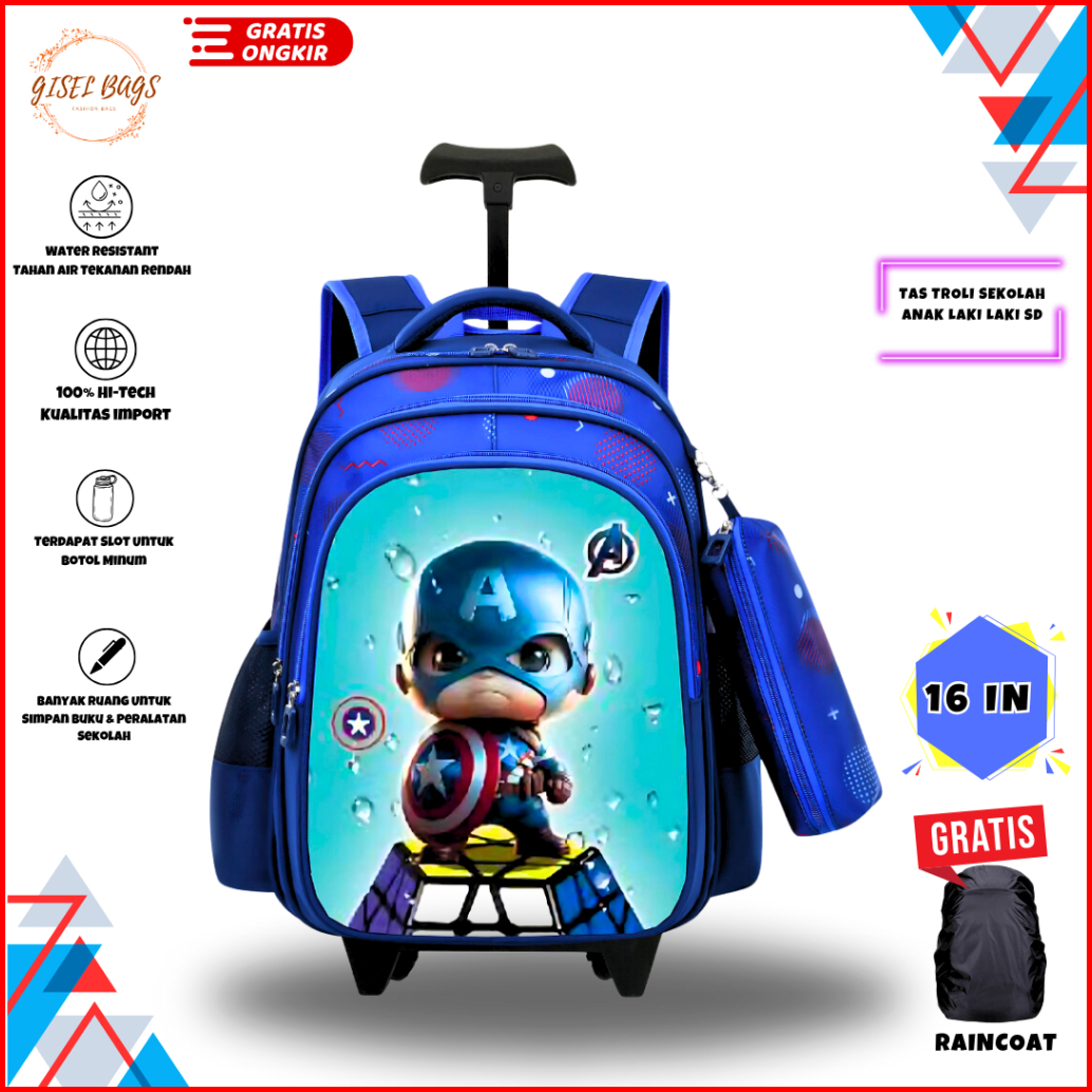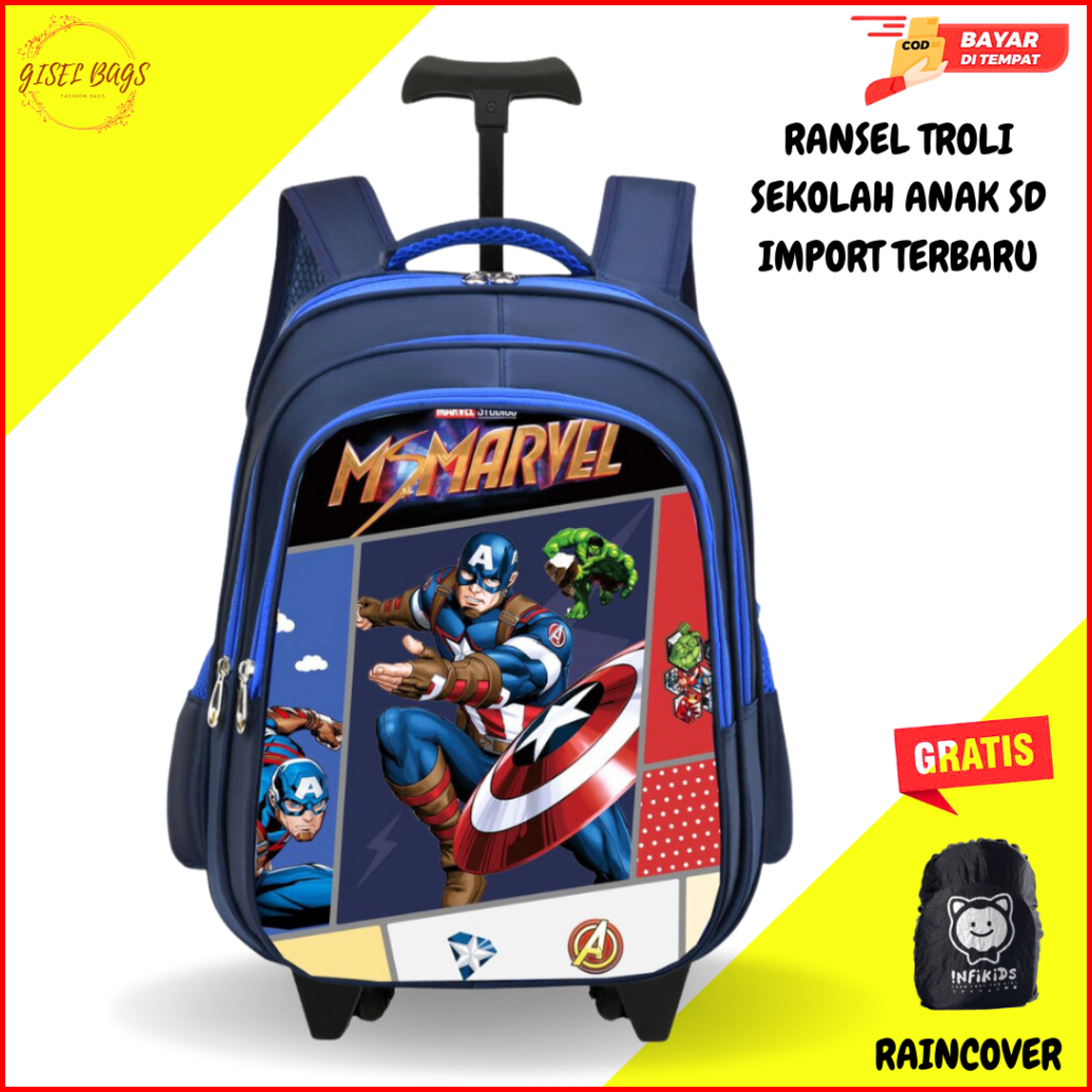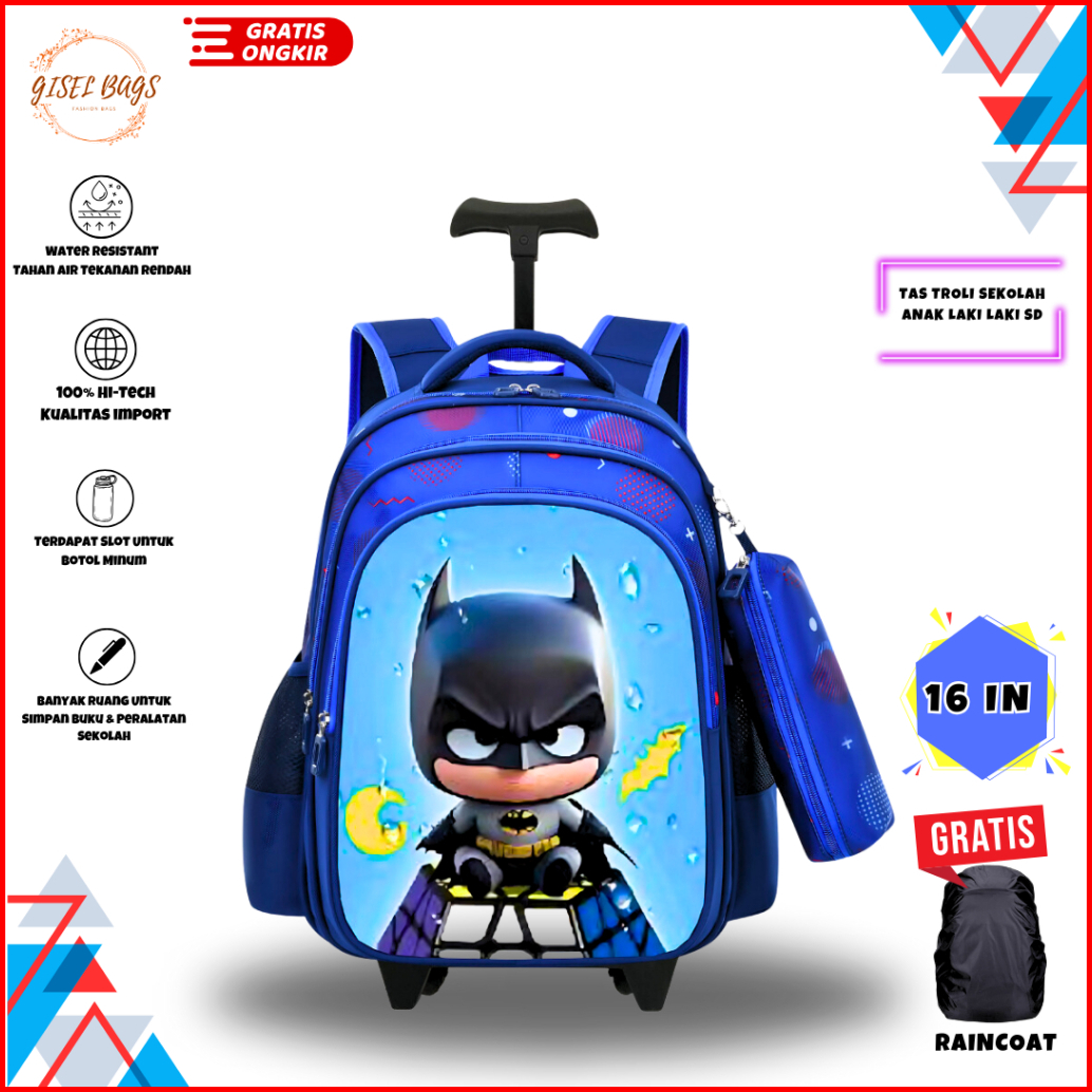 Tas Troli Dorong Anak Laki Laki Sd Import Gambar Karakter Superhero Timbul Anti Air