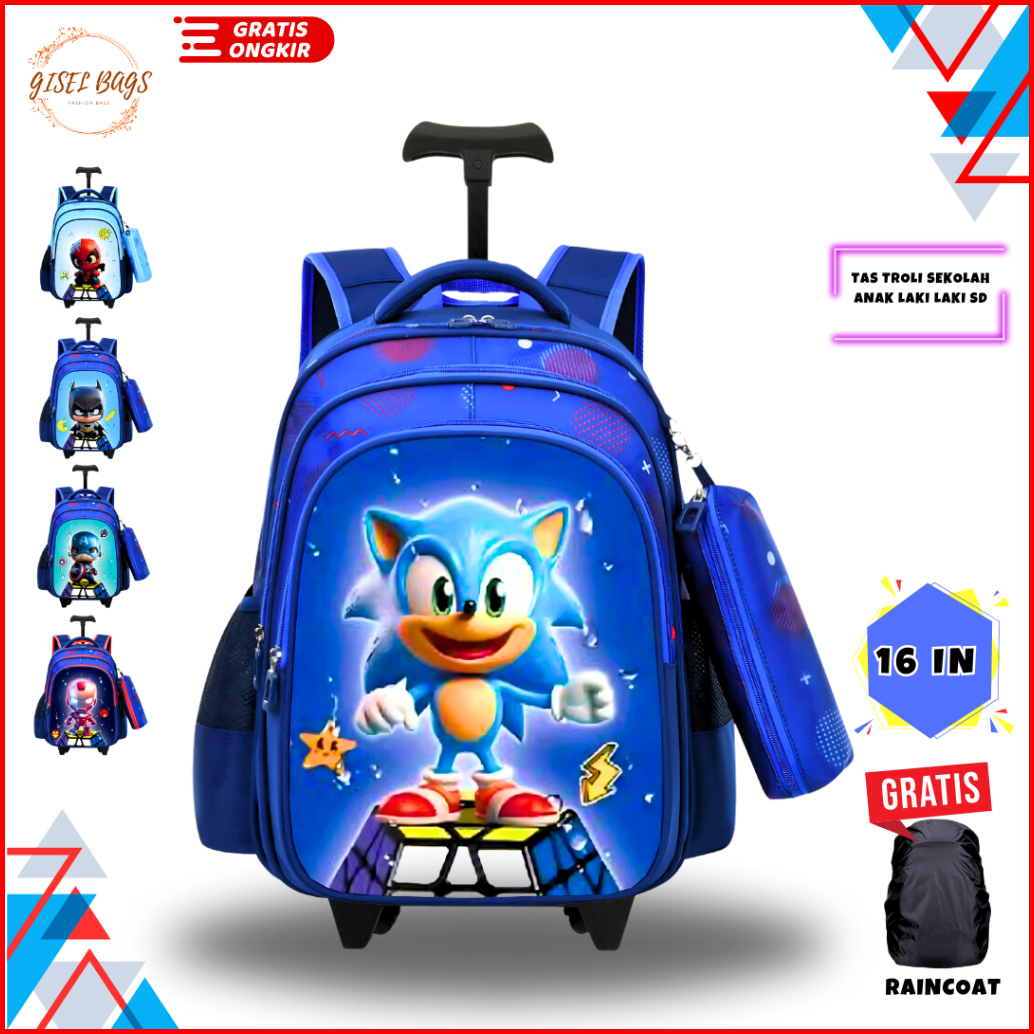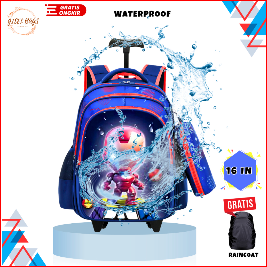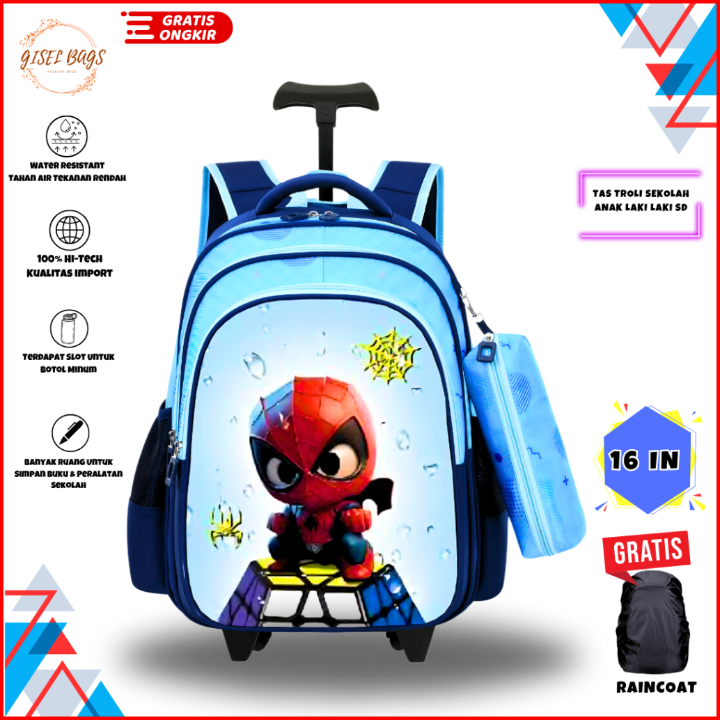 Tas Troli Dorong Anak Laki Laki Sd Import Gambar Karakter Superhero Timbul Anti Air