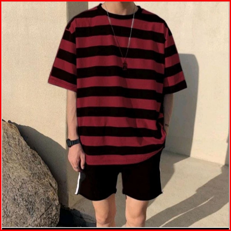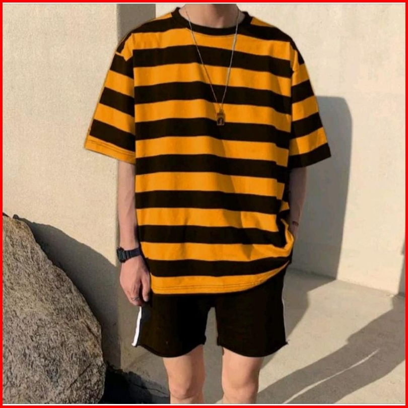 Kaos Salur Garis Stripe Pria Kaos Distro Baju Kaos Terlaris