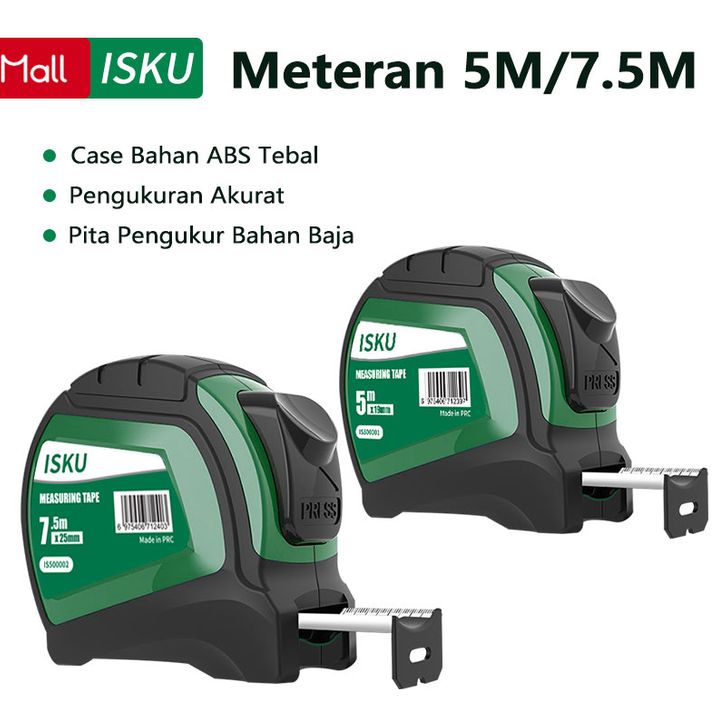 READY ISKU Tape Measure/Meteran 5-7.5m Elastis Pengunci Manual Alat Perkakas Meteran Karet/Tape Measure