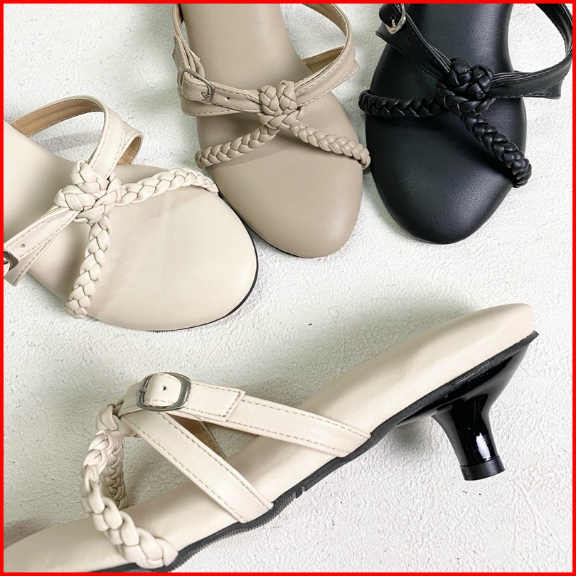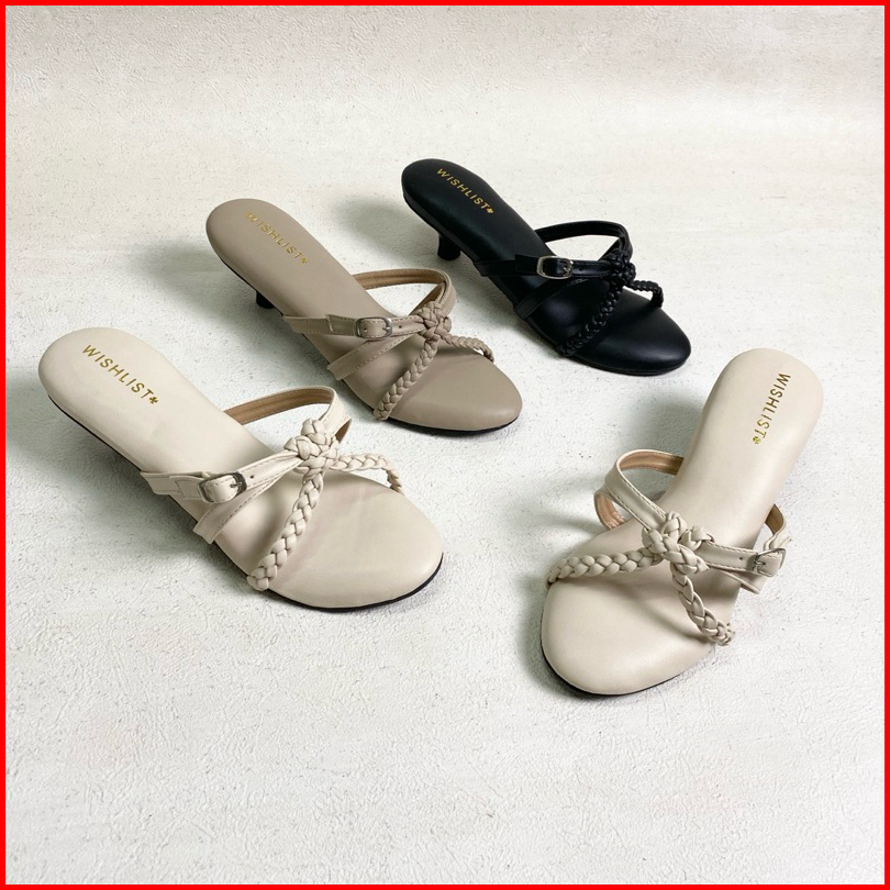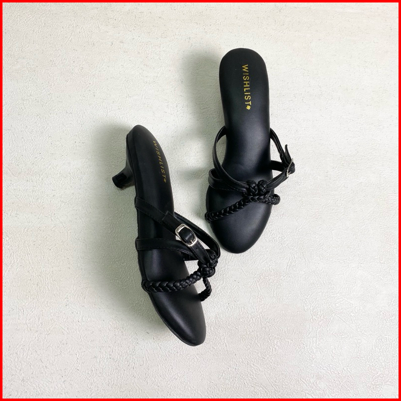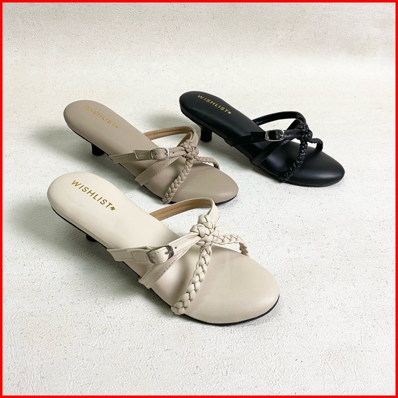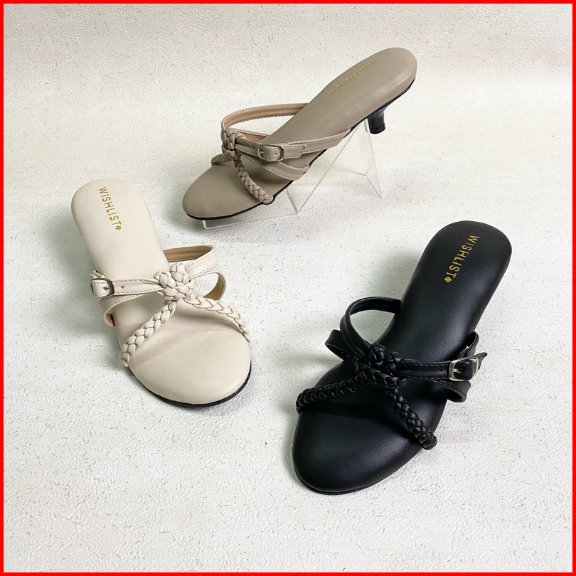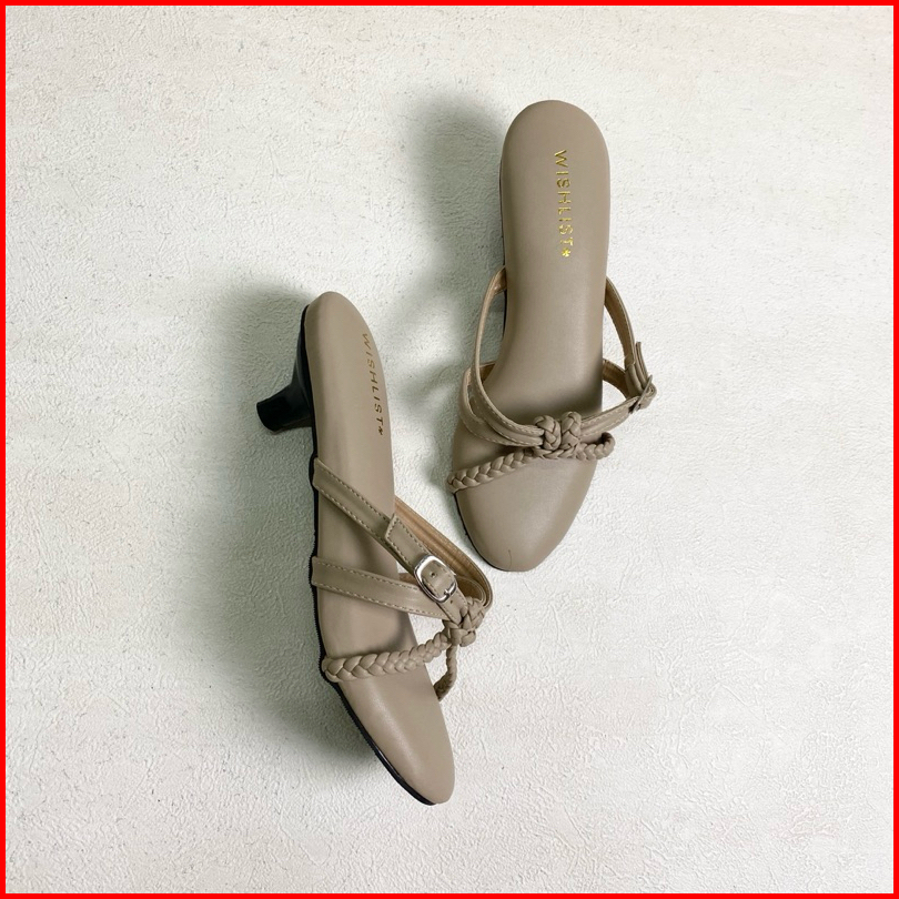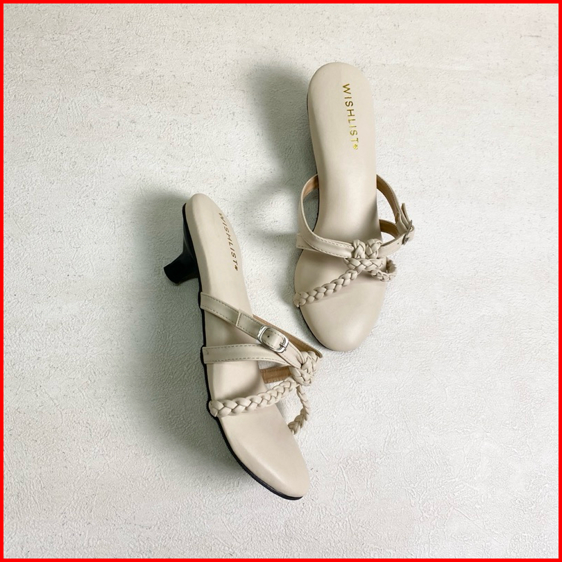 Wishlist Sandal Heels Wanita Kepang 3cm Kulit Sintetis Anti-slip
