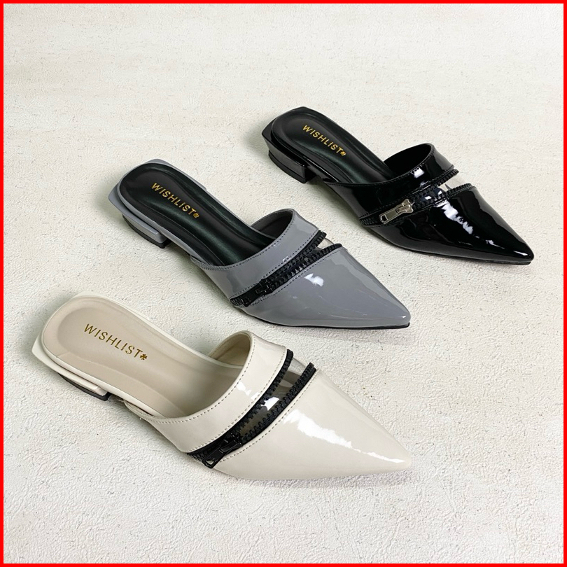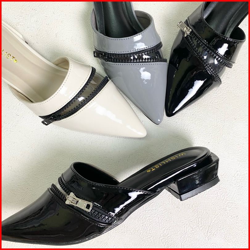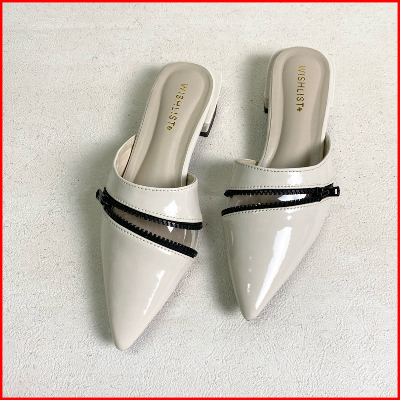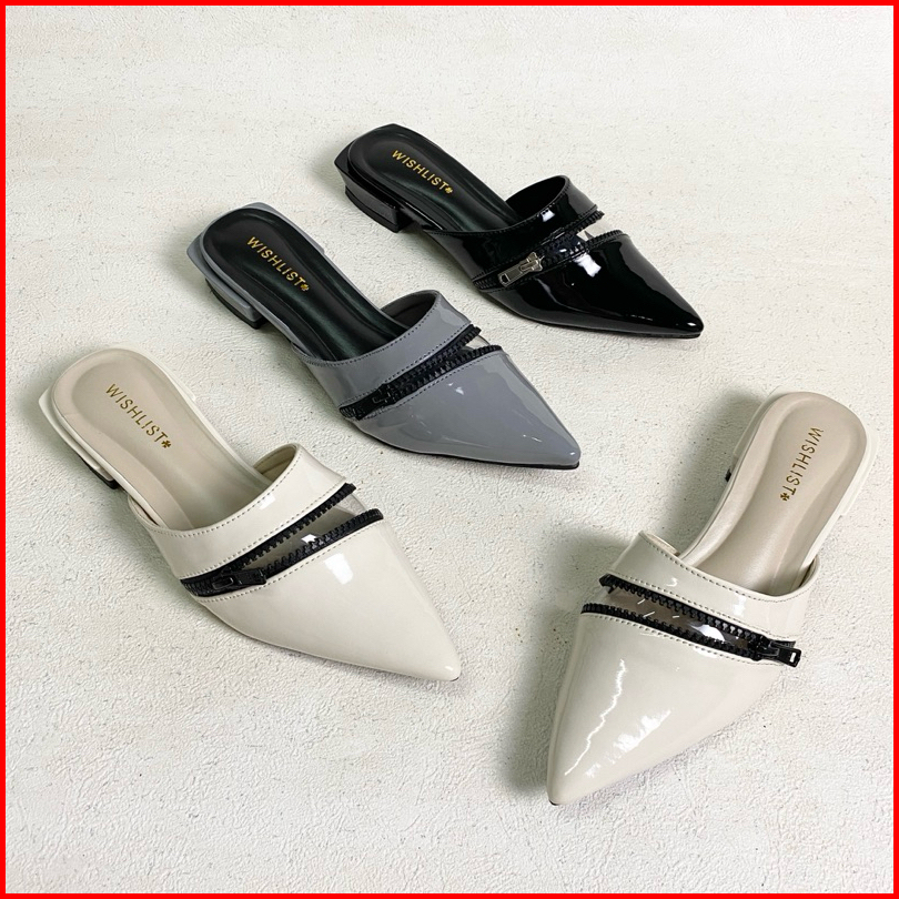 Wishlist Sepatu Mules Heels Wanita 3cm Zipper