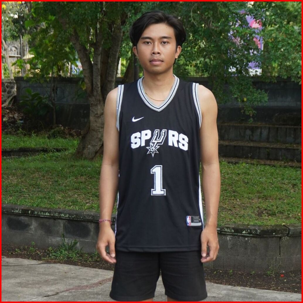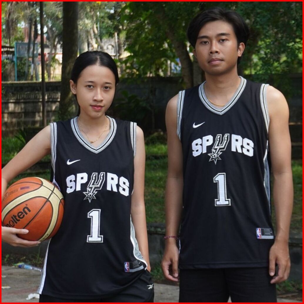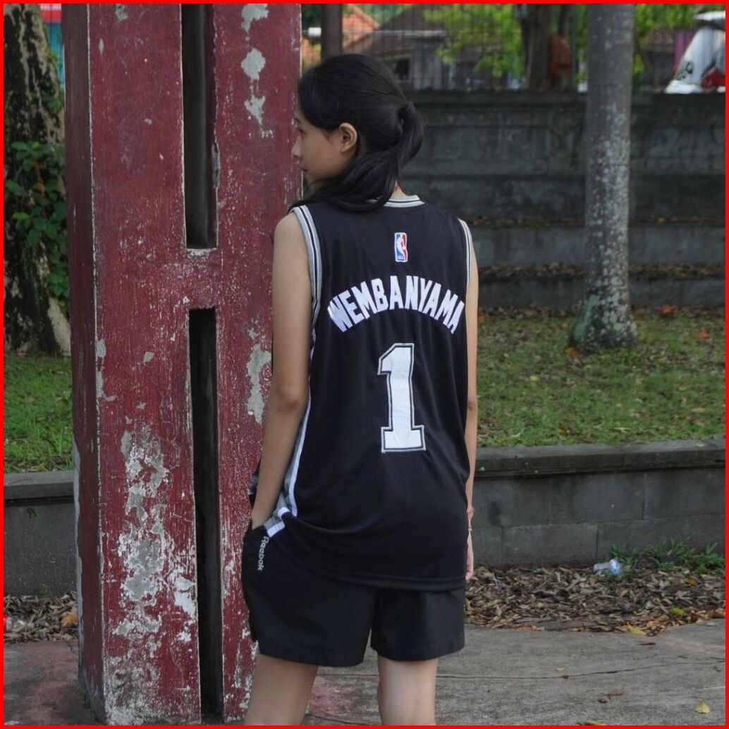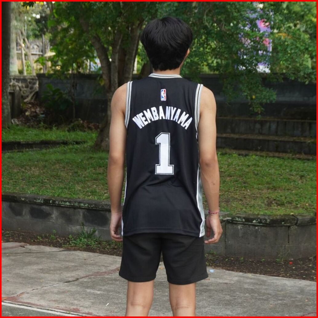 Jersey Basket Full Bordir Spurs Wembenyama Hitam