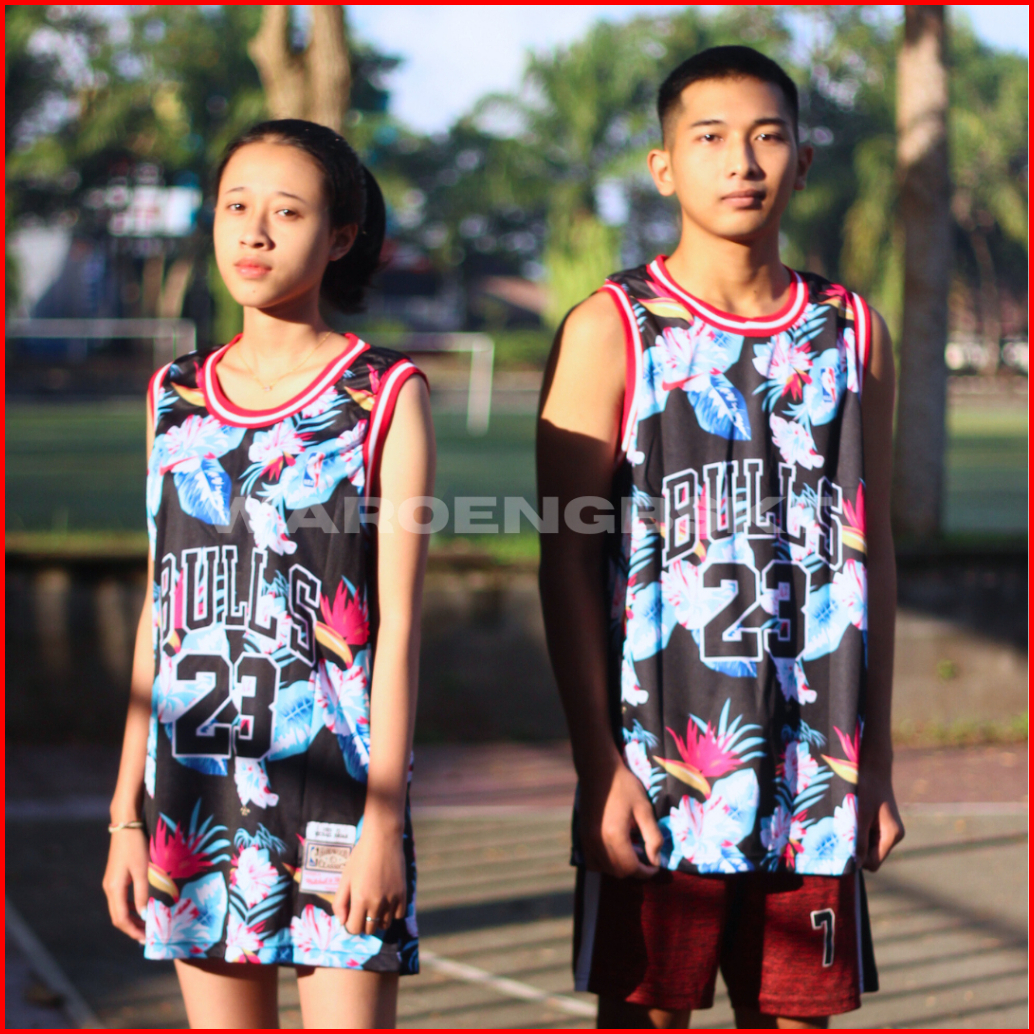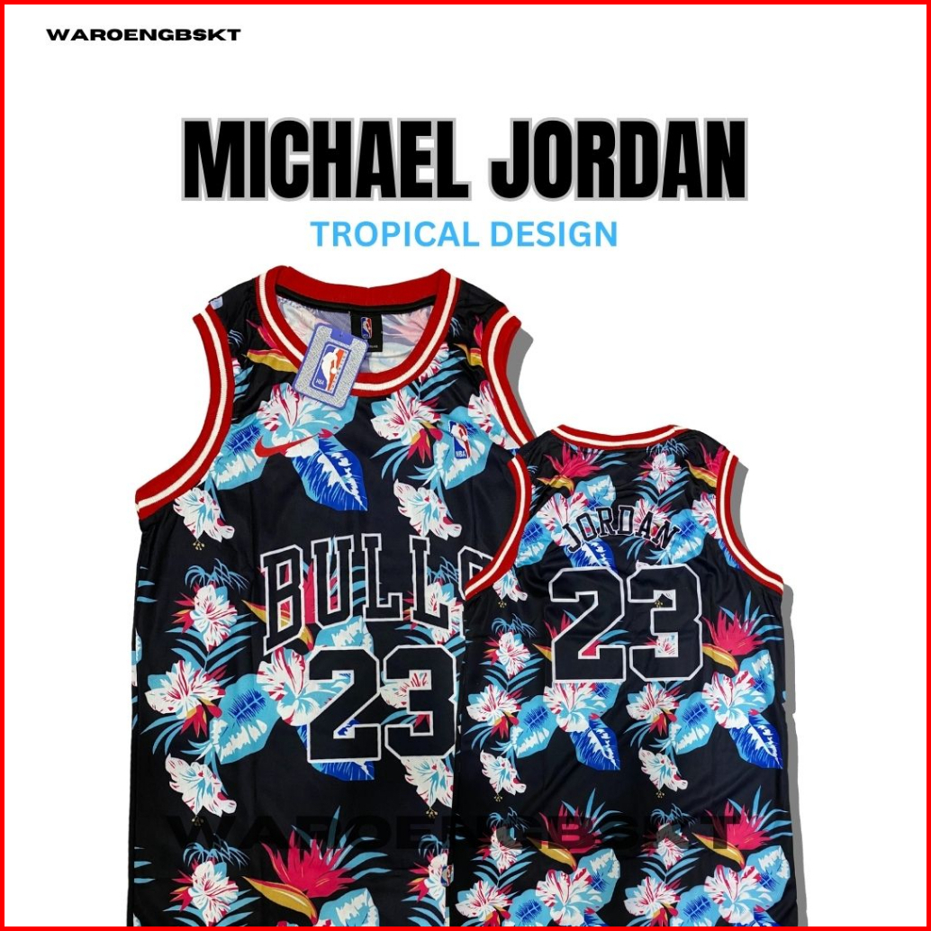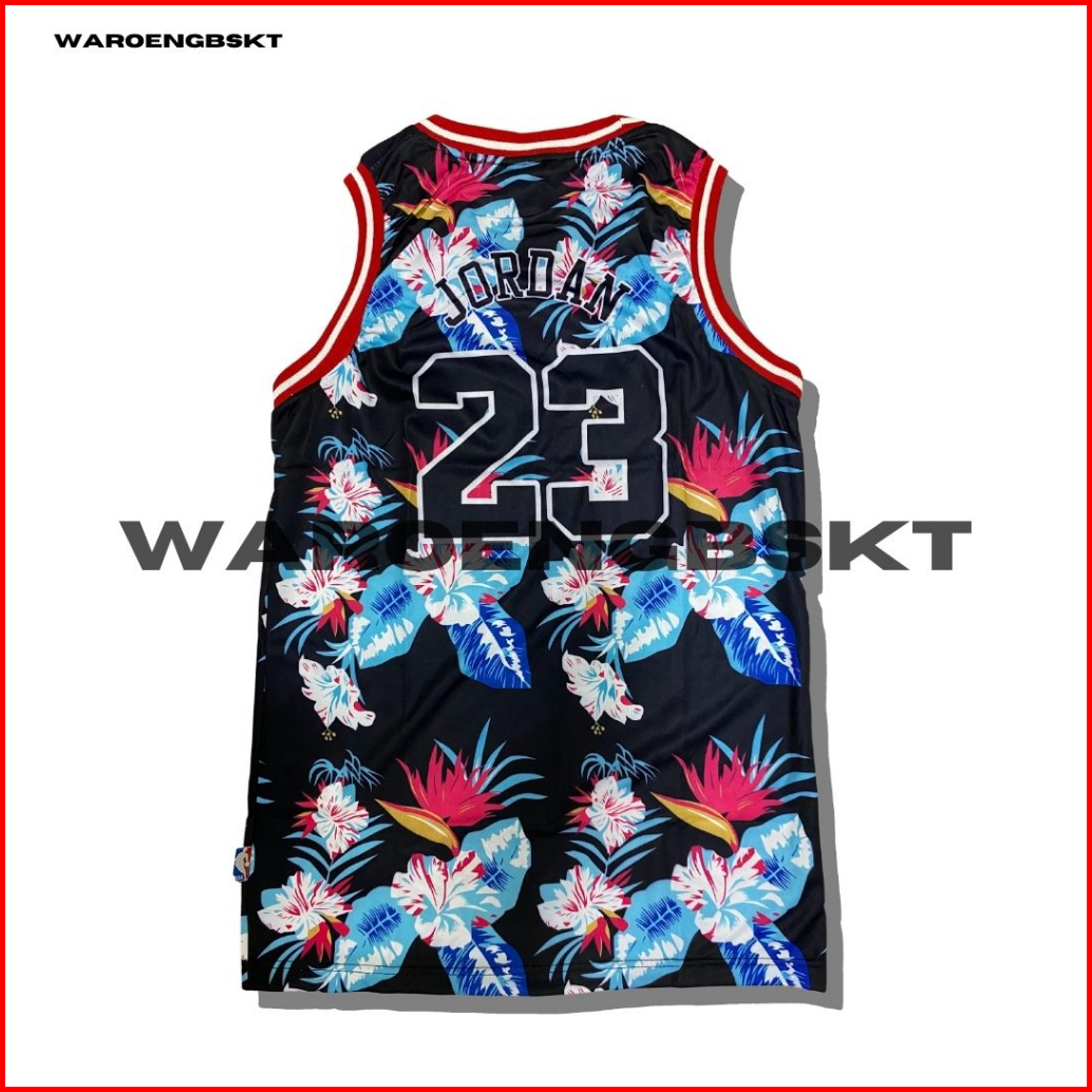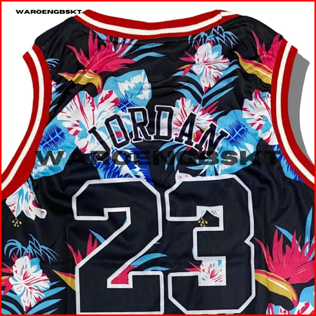 Jersey Basket Printing Michael Jordan Desain Bunga Hitam