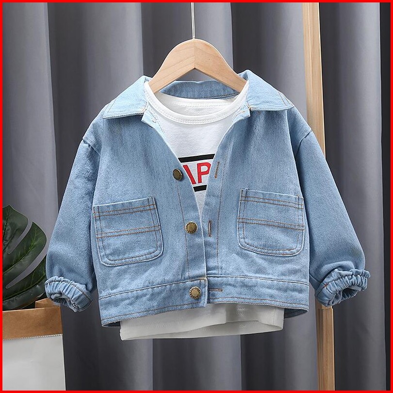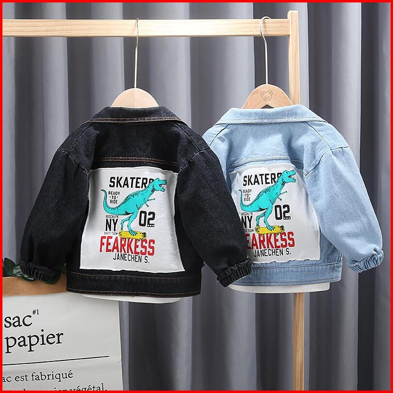 Jaket Denim Anak Laki Laki Atasan Motif Dino Fashion Import Luaran Outer Lengan Panjang Grosir