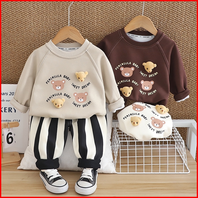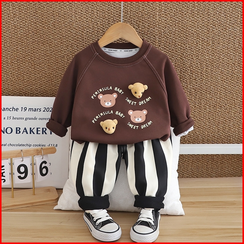 Setelan Sweater Anak Laki Laki Import Stelan Sweater Anak Balita Impor Sweater Motif 4 Kepala Bear 2 Boneka 3d Anak Cowo