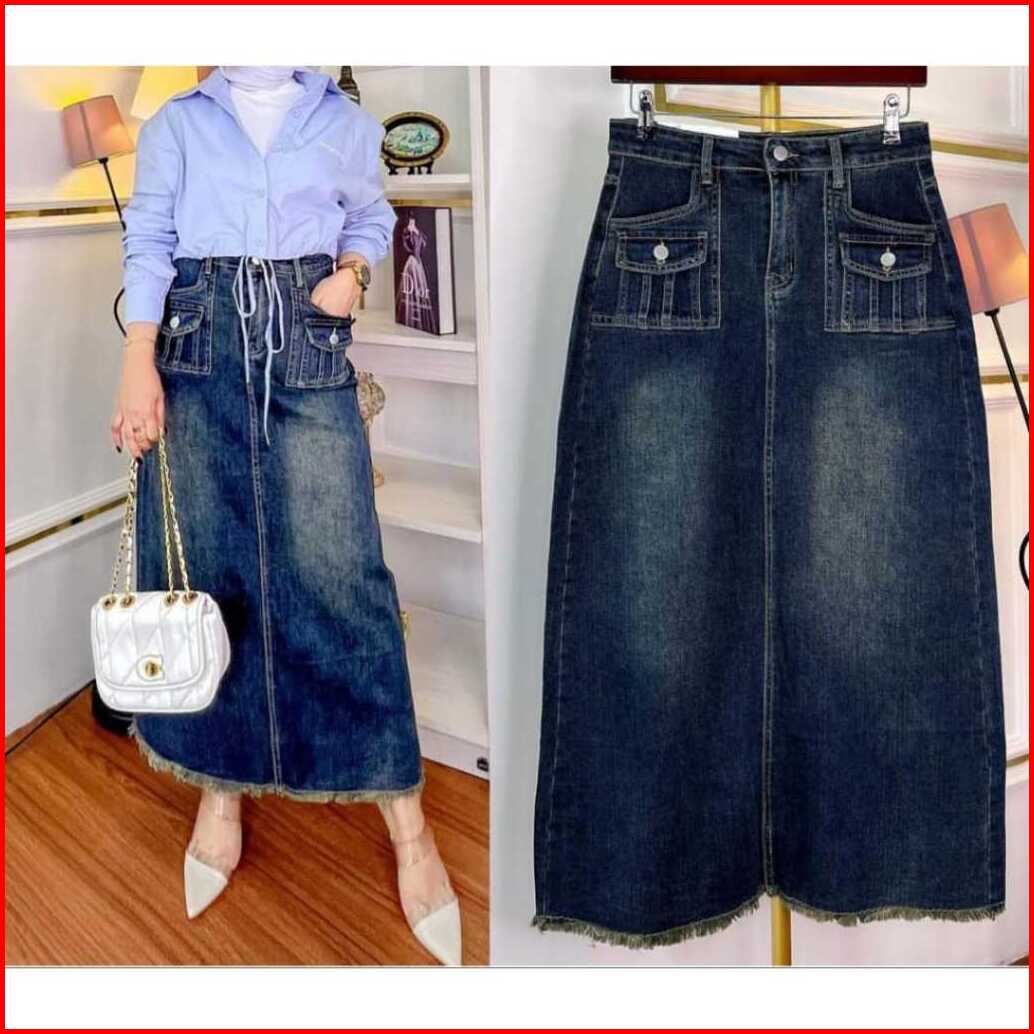 Rok Jeans Sendwash Rok Jeans Termurah Rok Jeans Wanita Rok Jeans Panjang