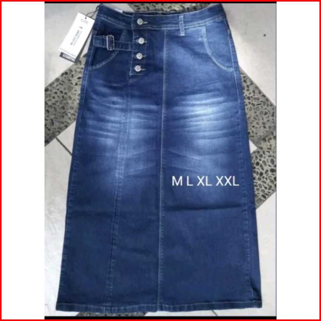 Rok Jeans Panjang Wanit Dewasa Jumbo L Xl Xxl