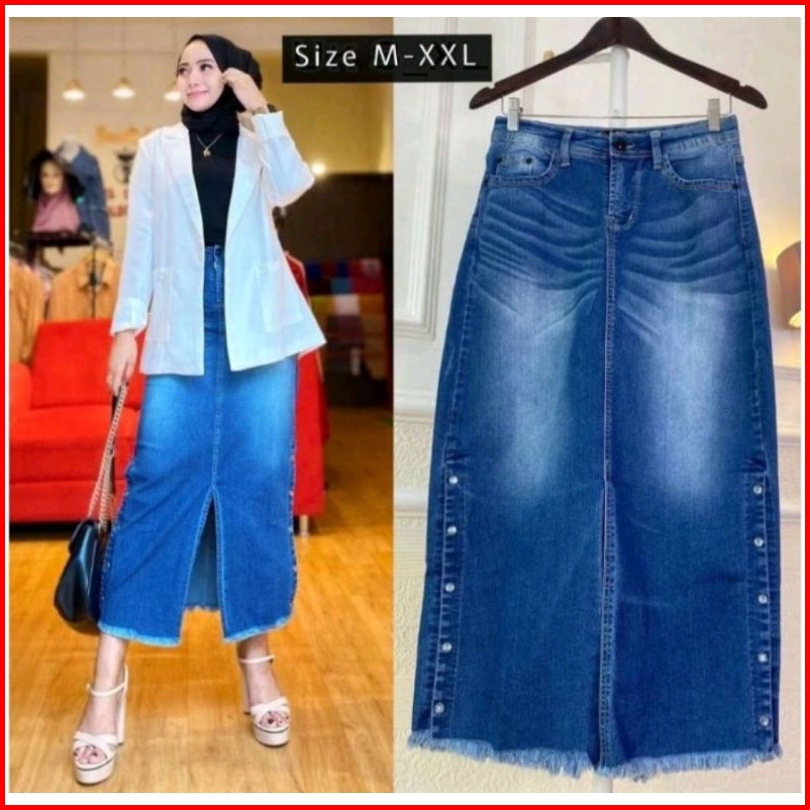 Rok Jeans Vj Rok Jeans Panjang Polos Rok Jeasn Strect Rok Jeans Termurah