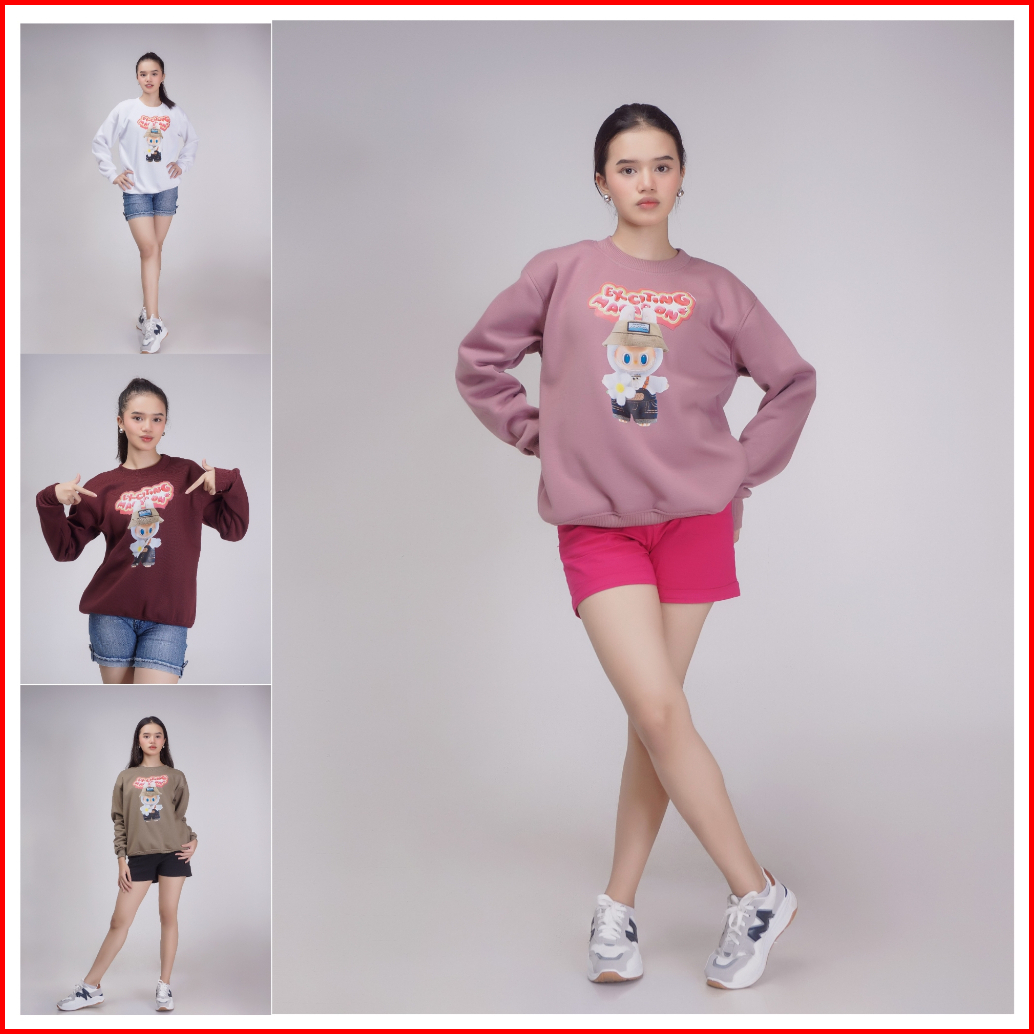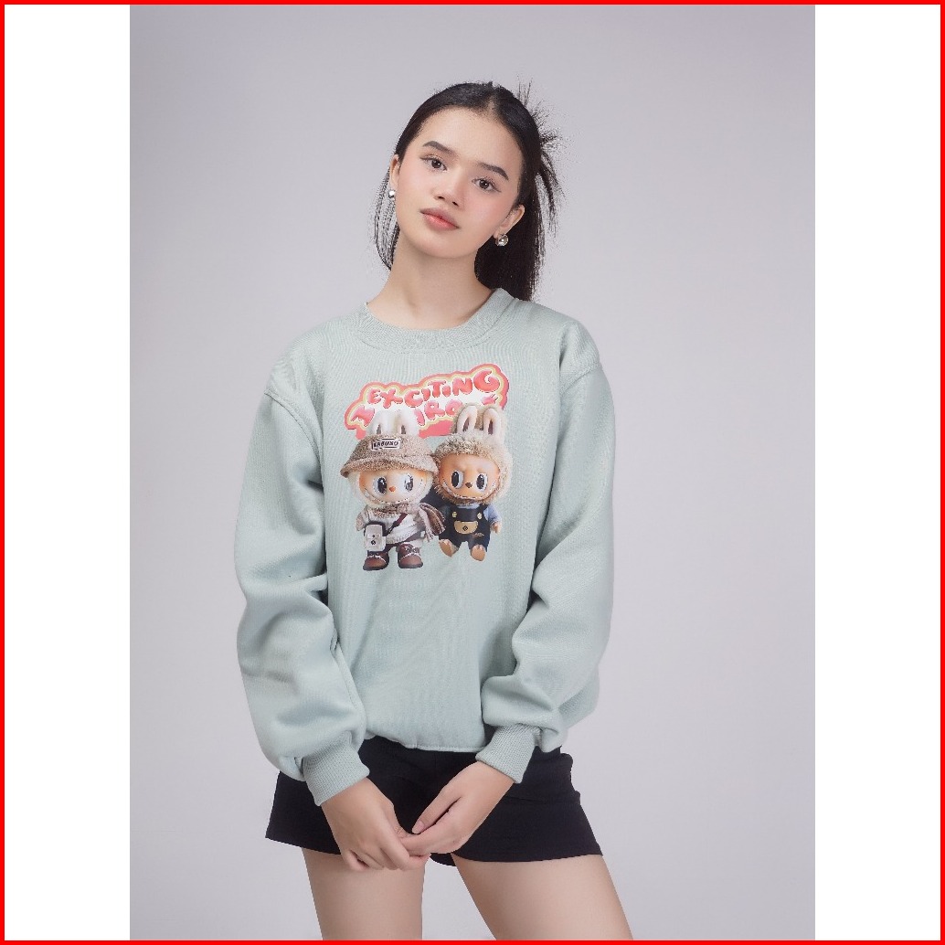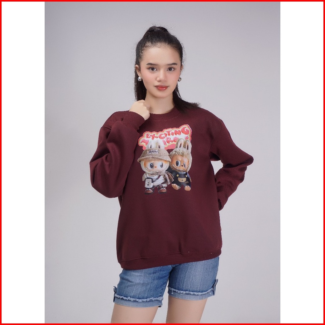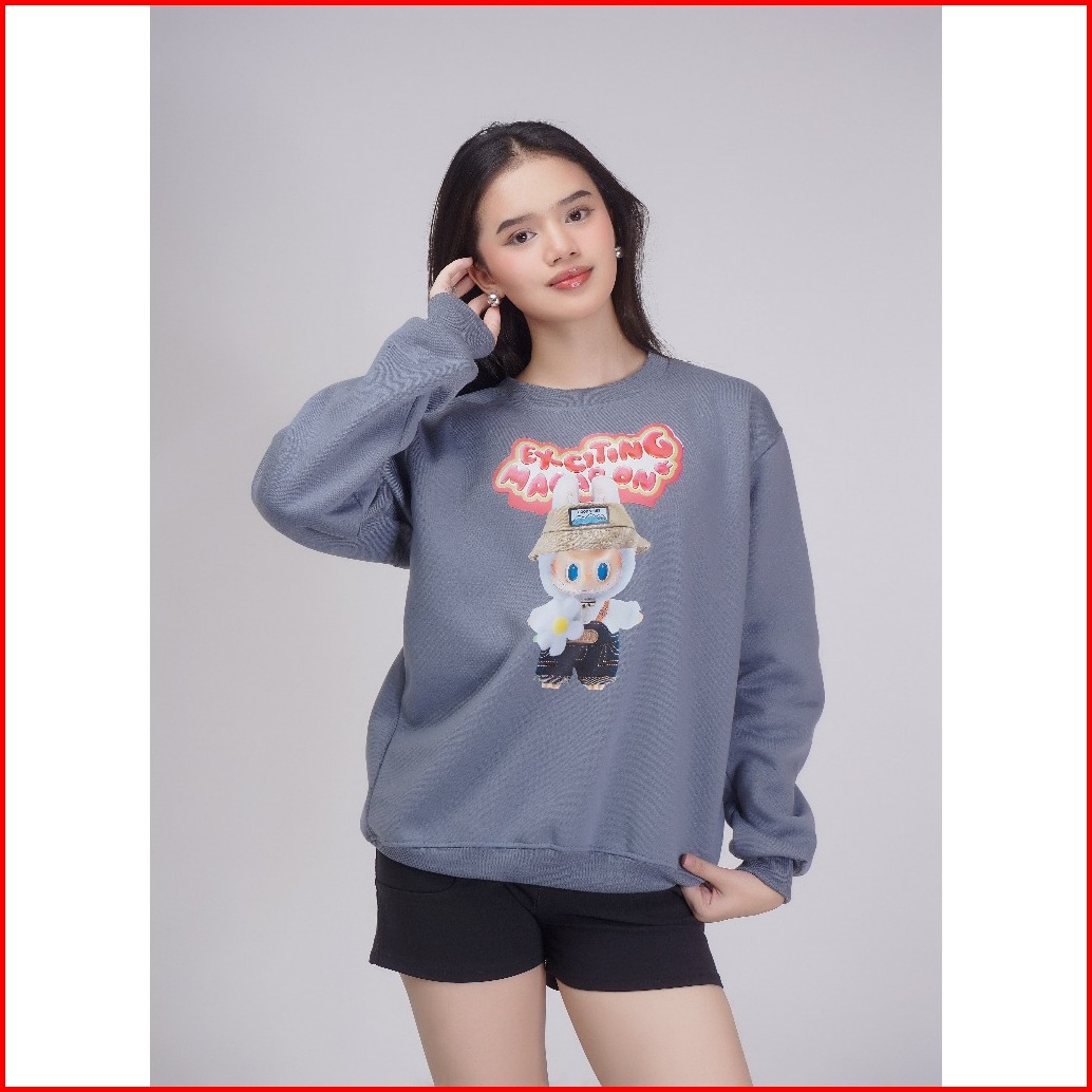 Sweater Crewneck Labubu Fullmoon Unisex Cewek Cowok Bahan Tebal Original Brand Distro
