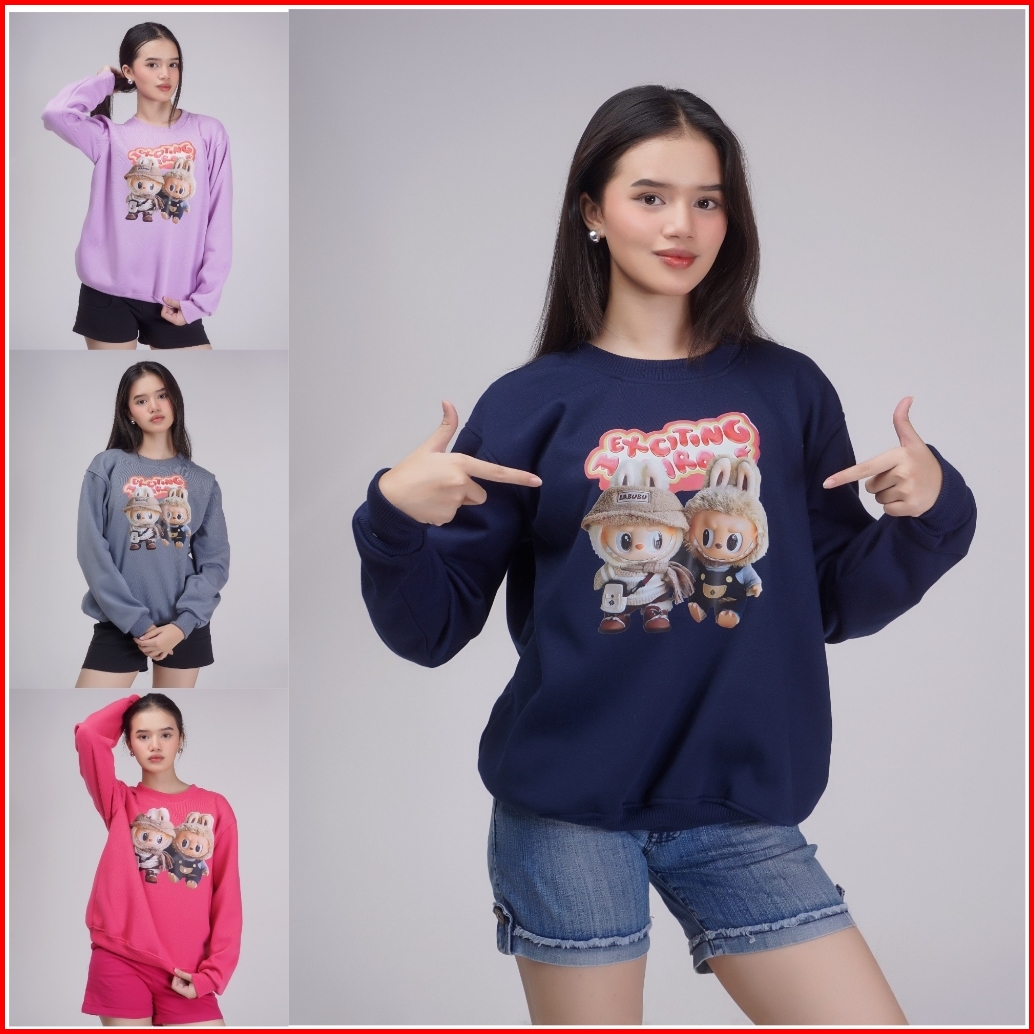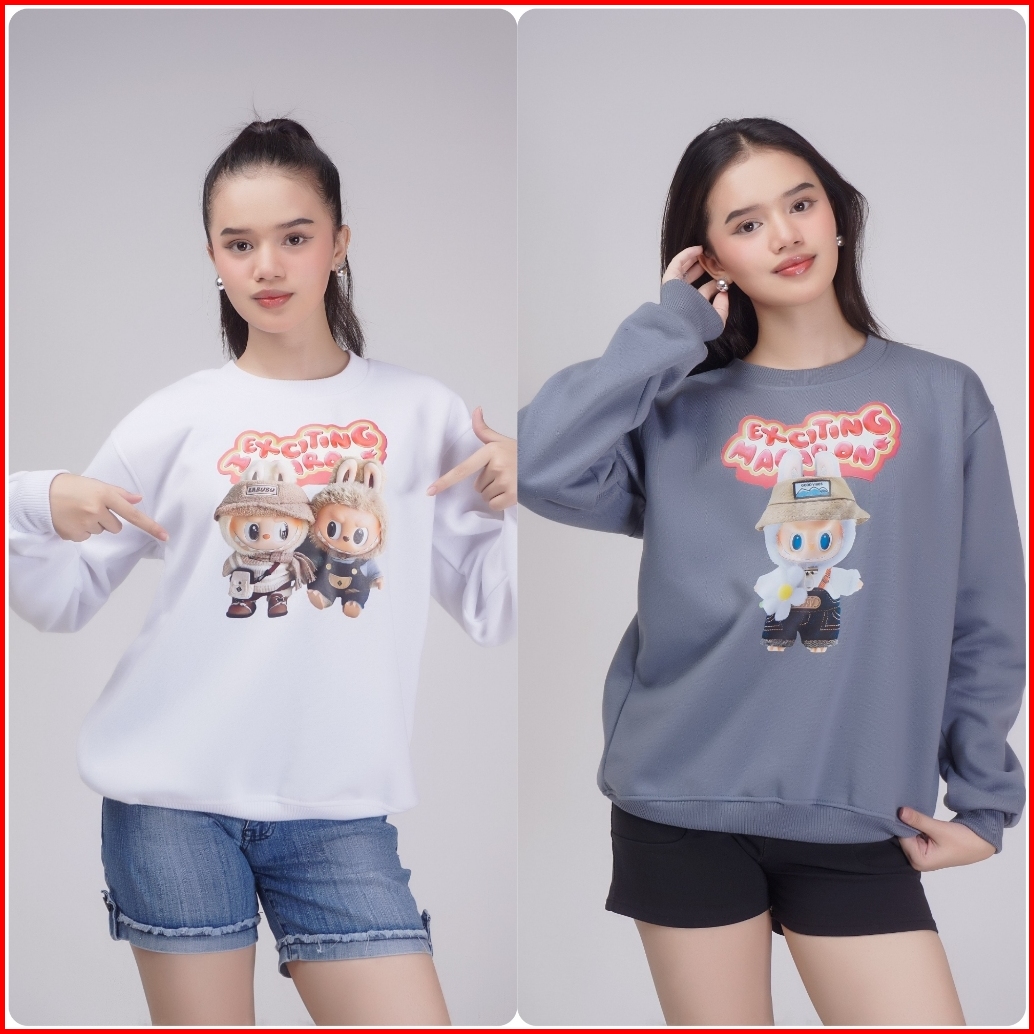 Sweater Crewneck Labubu Fullmoon Cewek Cowok Bahan Tebal Original Brand Distro