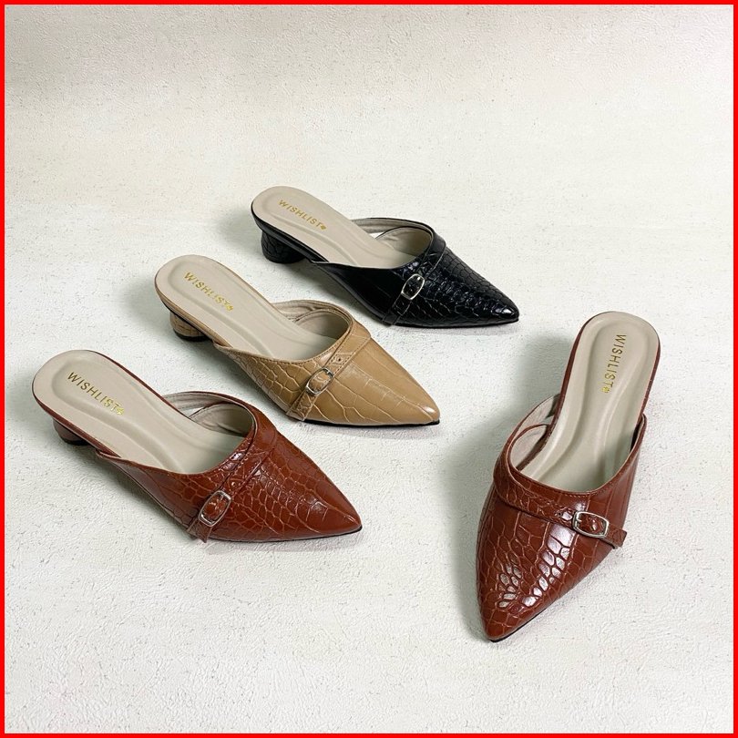 Wishlist Sandal Sepatu Mules Wanita Heels 3cm Bitah