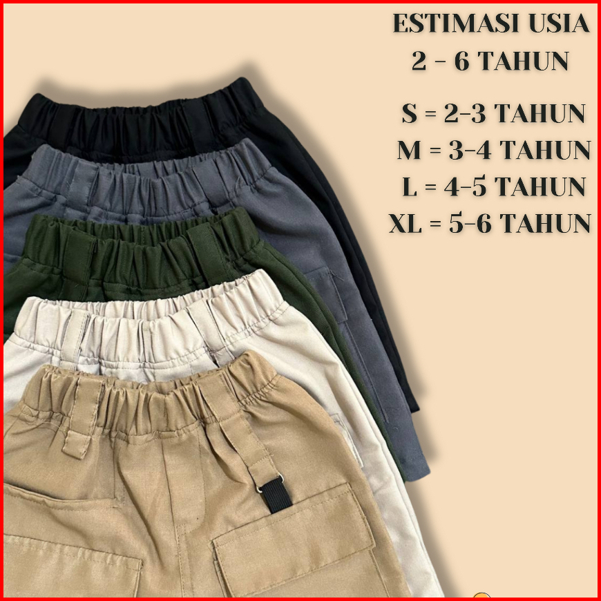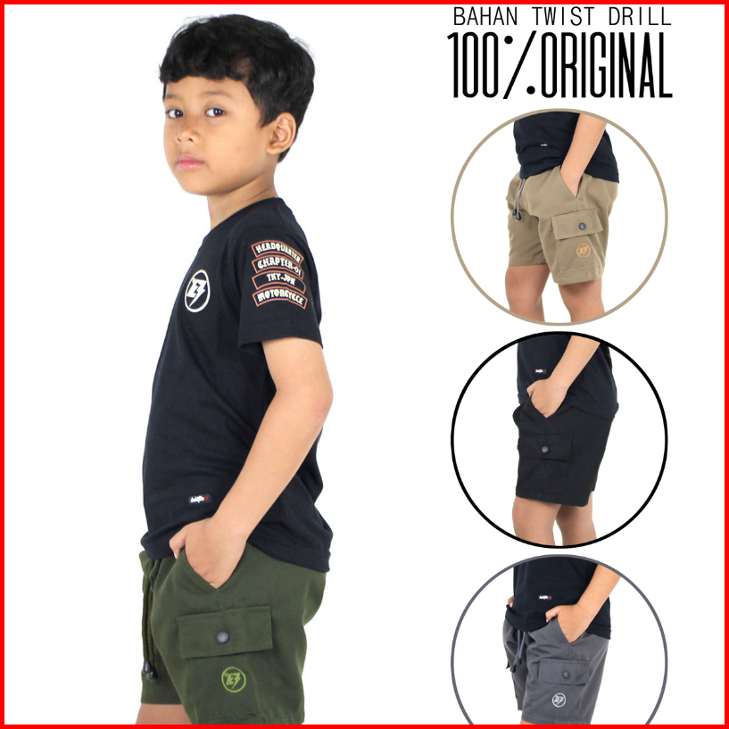 Celana Pendek Anak Laki-laki Chinos Saku Depan Bahan Drill Usia 2-6 Tahun