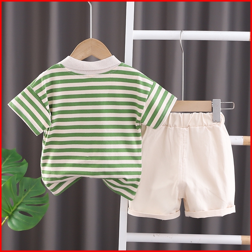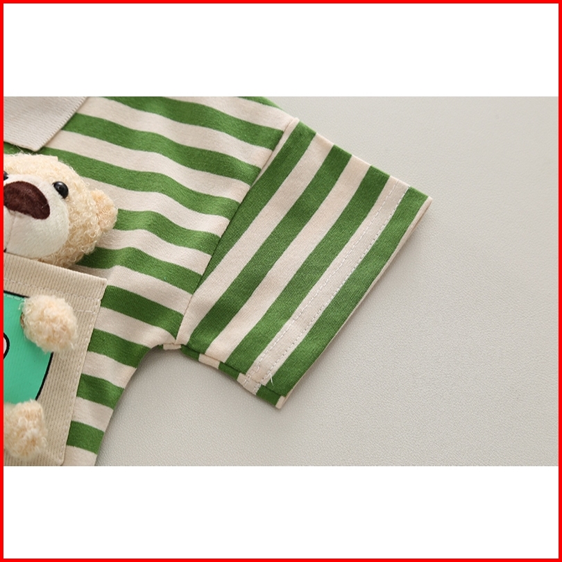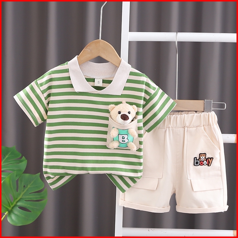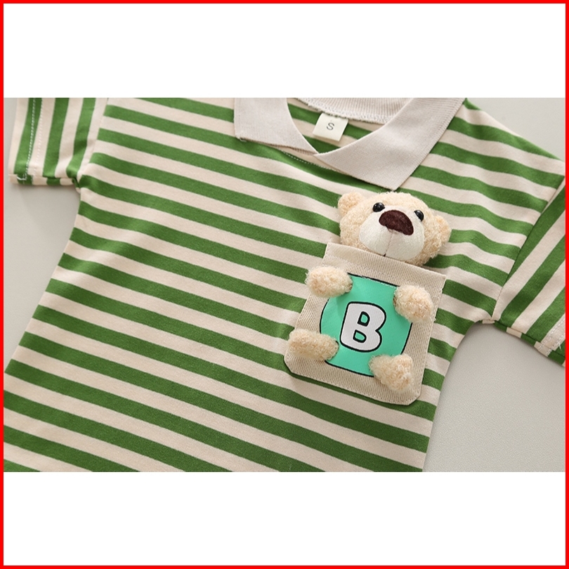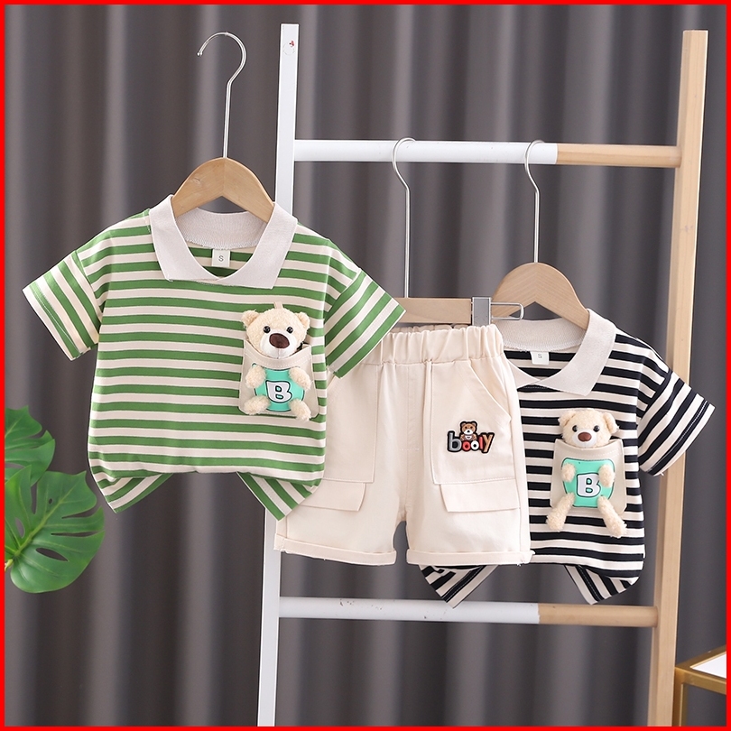 Setelan Kaos Anak Laki Laki Import Stelan Kaos Anak Balita Impor Kaos Motif Garis Garis Dengan Kantong Boneka Bear Huruf