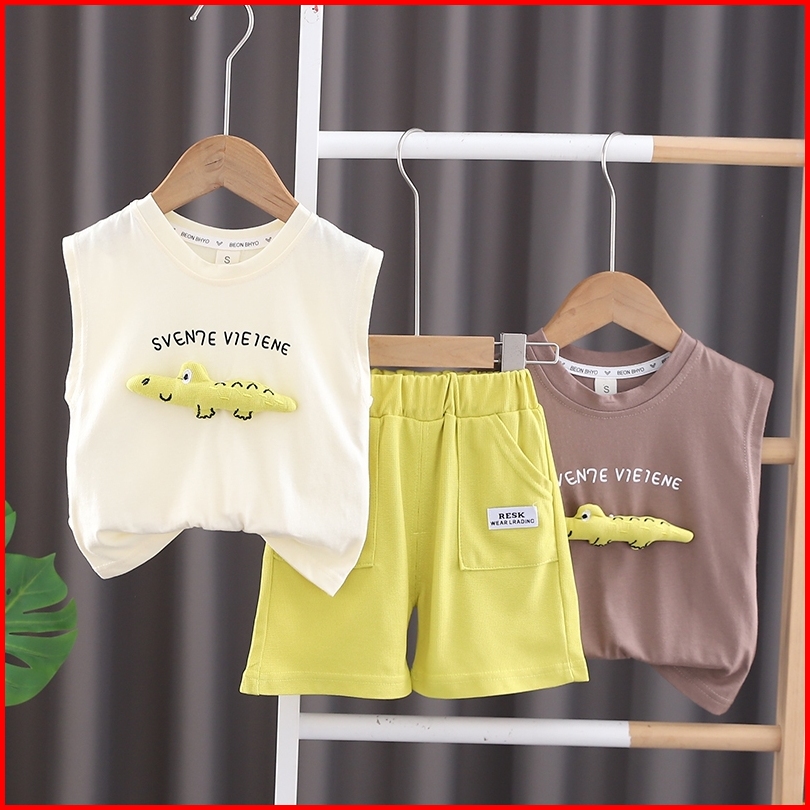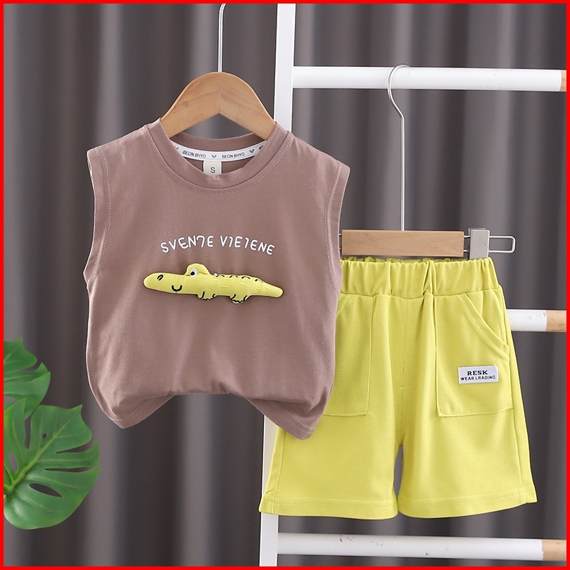 Setelan Kaos Anak Laki Laki Import Stelan Kaos Tanpa Lengan Anak Balita Impor Kaos Lengan Buntung Anak Cowok Cewek Gamba