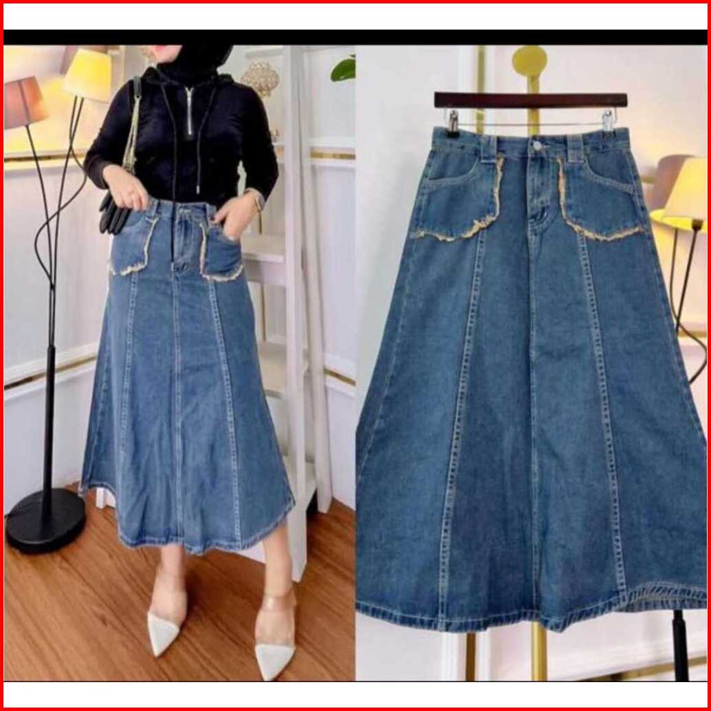 Rok Jeans Import Bahan Streact Melar Panjang Rok 90 92