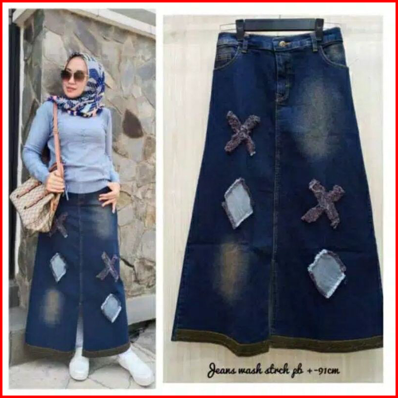 Rok Jeans Strect Wanita Bahan Adem Minimalis