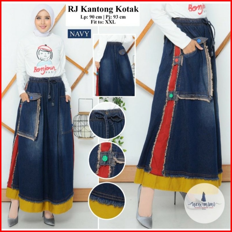 Rok Jeans Mix Katun Rok Jeans Variasi Rok Jeans Panjang Rok Jeans Wanita
