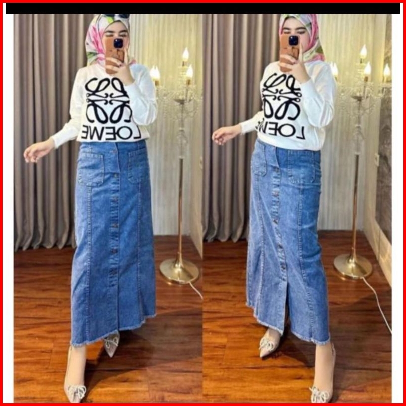 Rok Jeans Panjang Rok Jeans Strect Terbaru Rok Wanita Kekinian Rok Menara