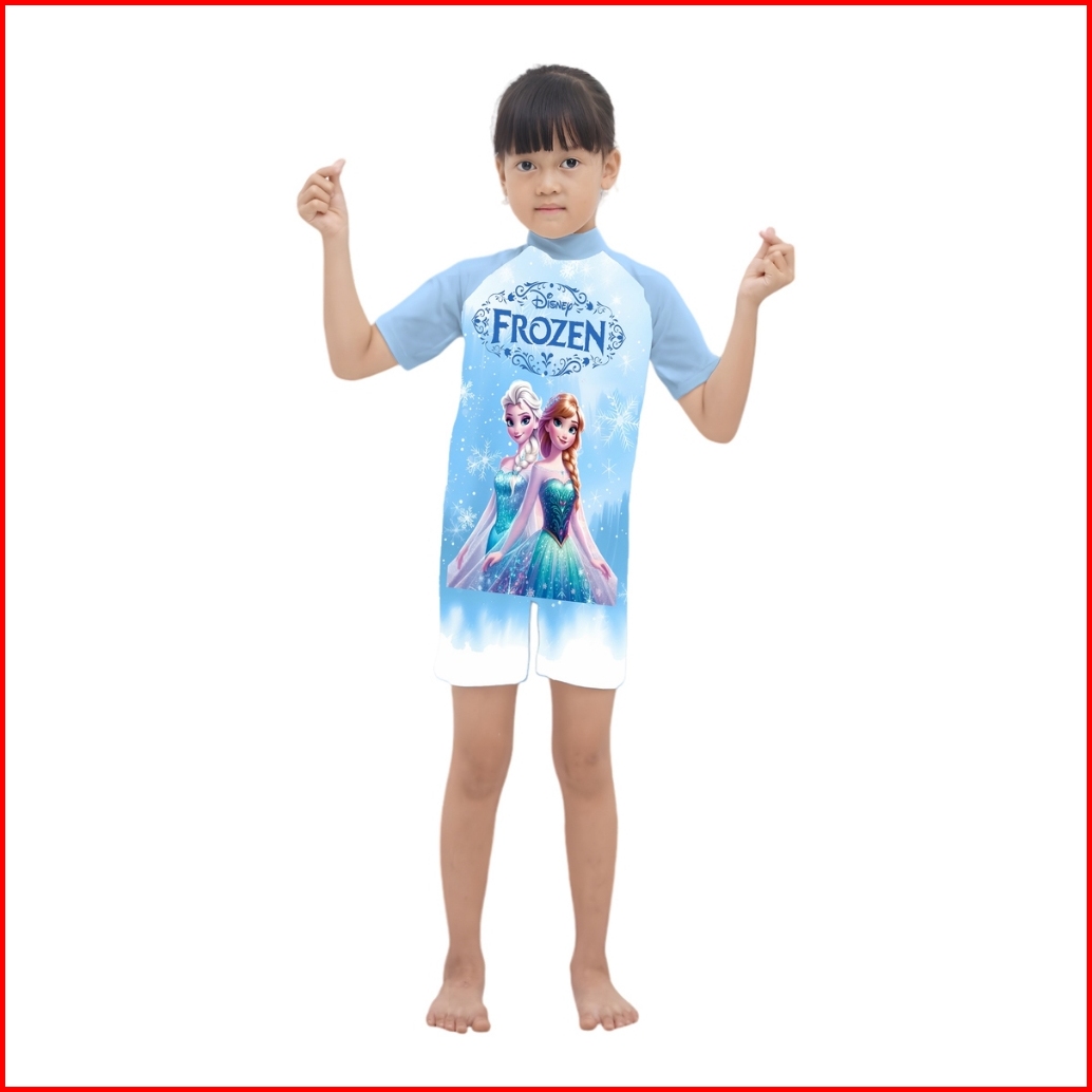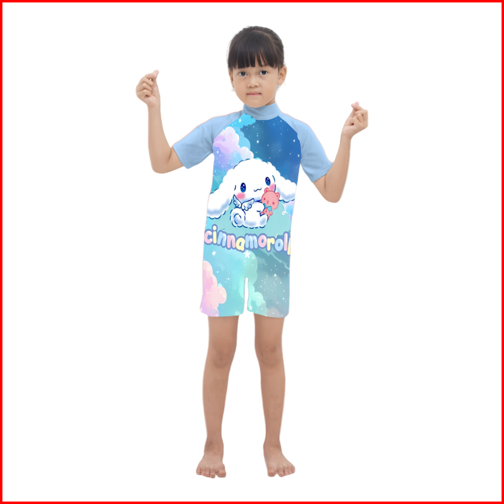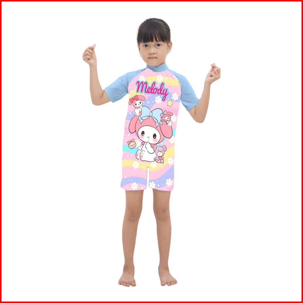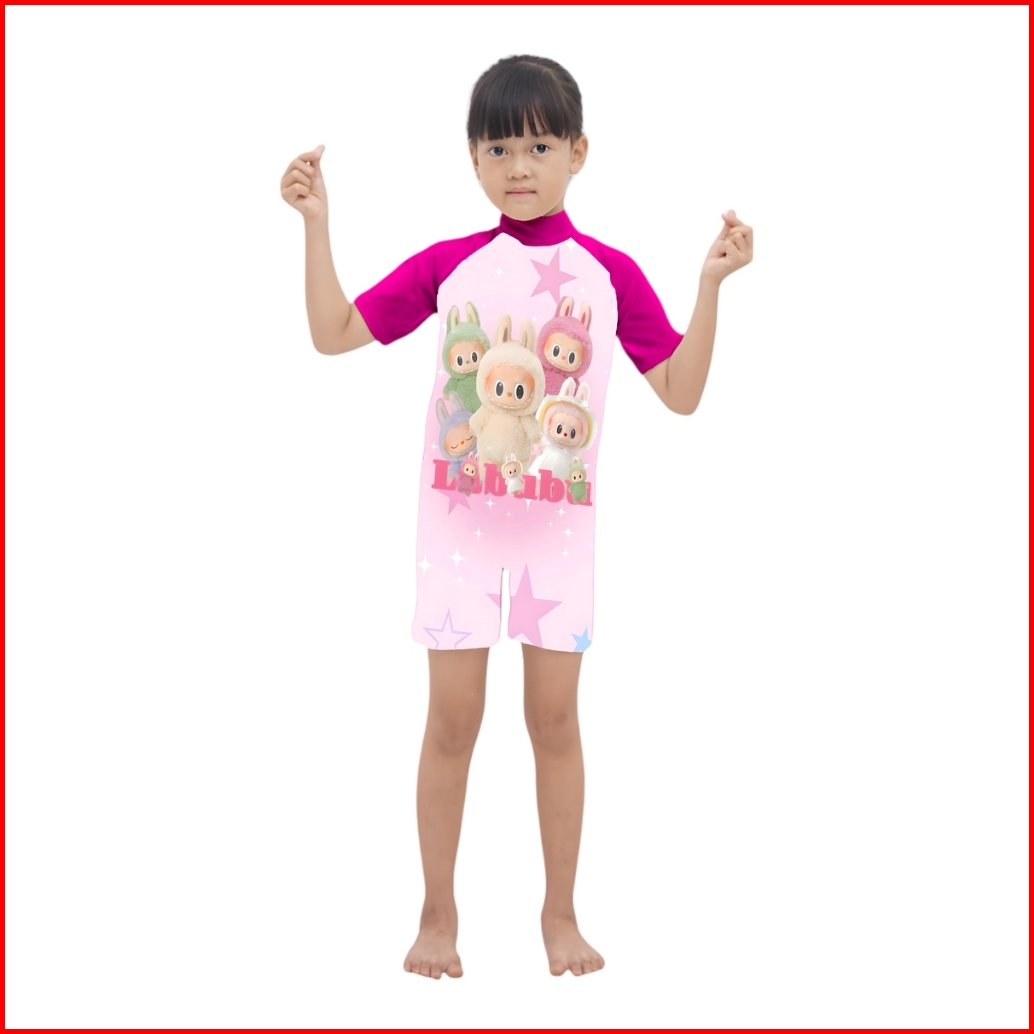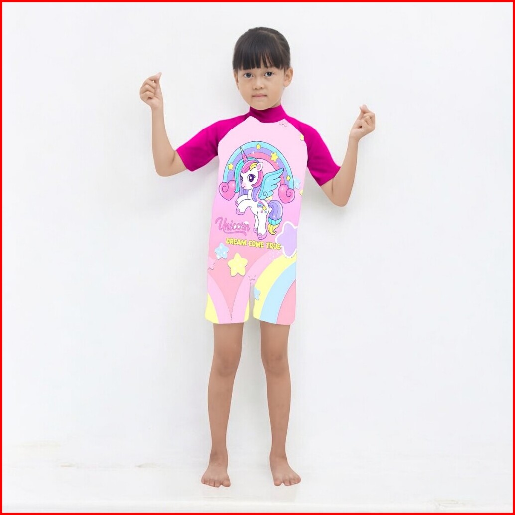 Baju Renang Anak Perempuan Lengan Pendek Motif Karakter Lucu Cewek