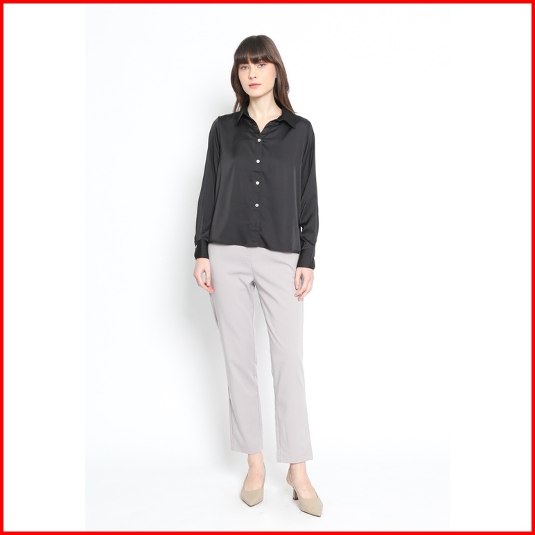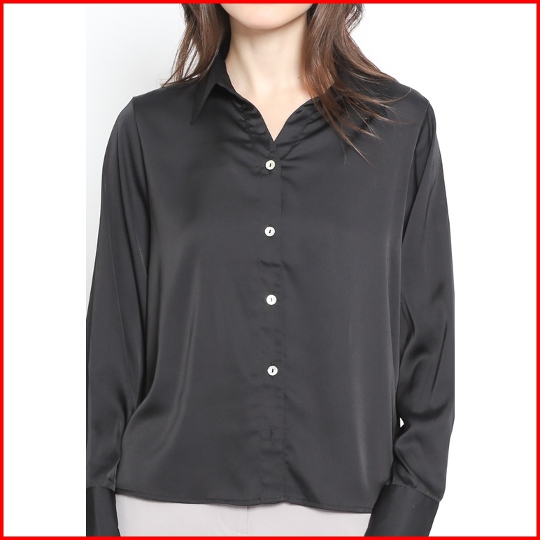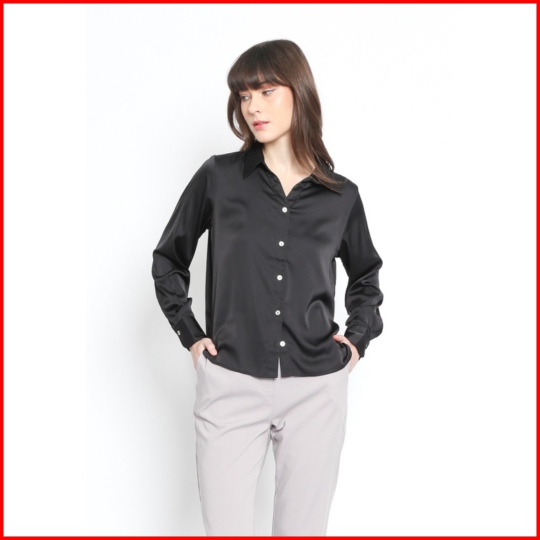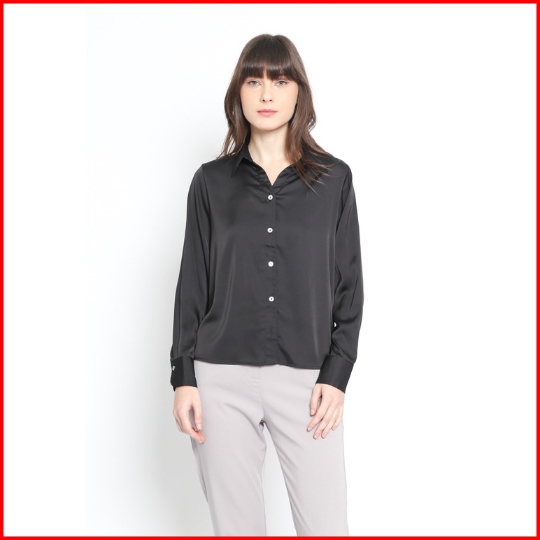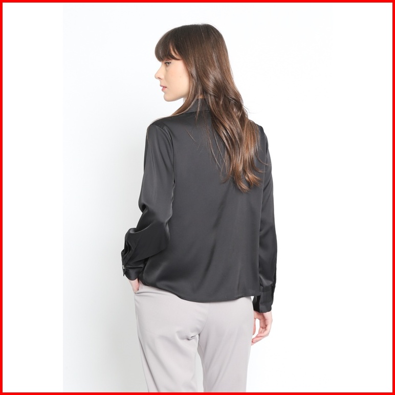 Valino Ladies Kemeja Flowy Hitam V Neck Wanita- D-bjga25-b5
