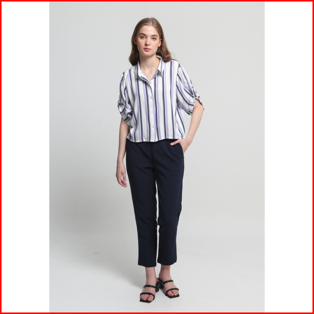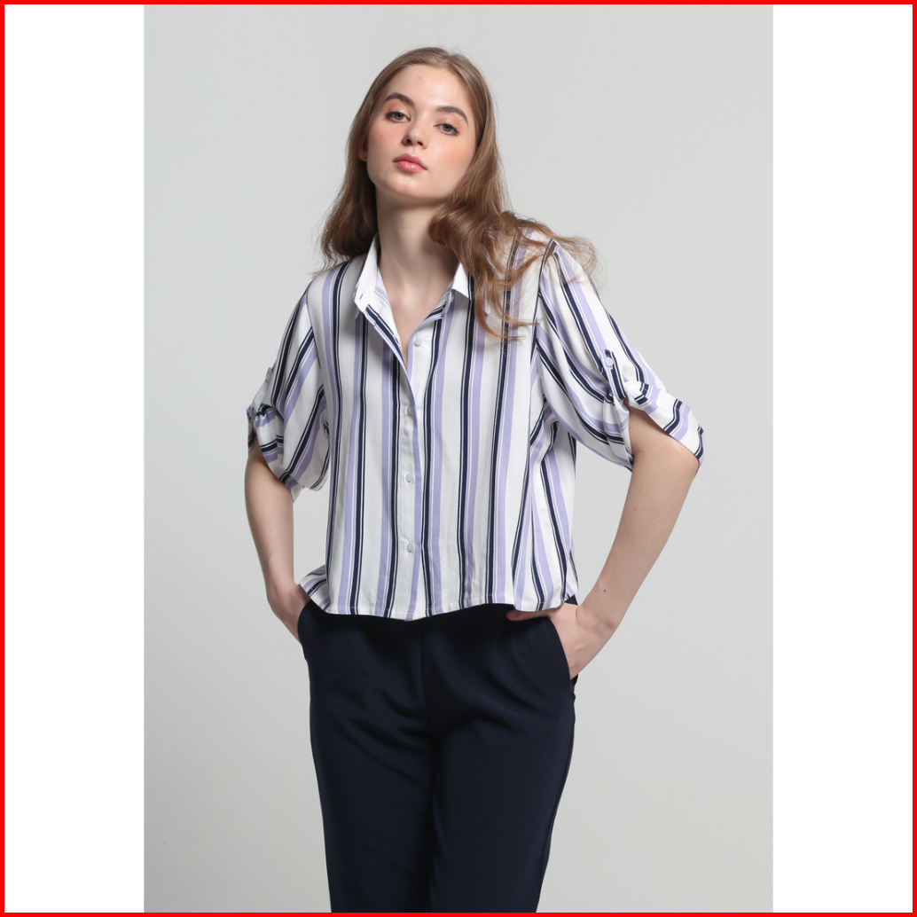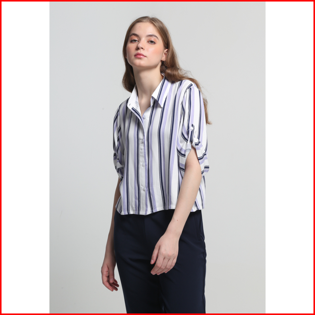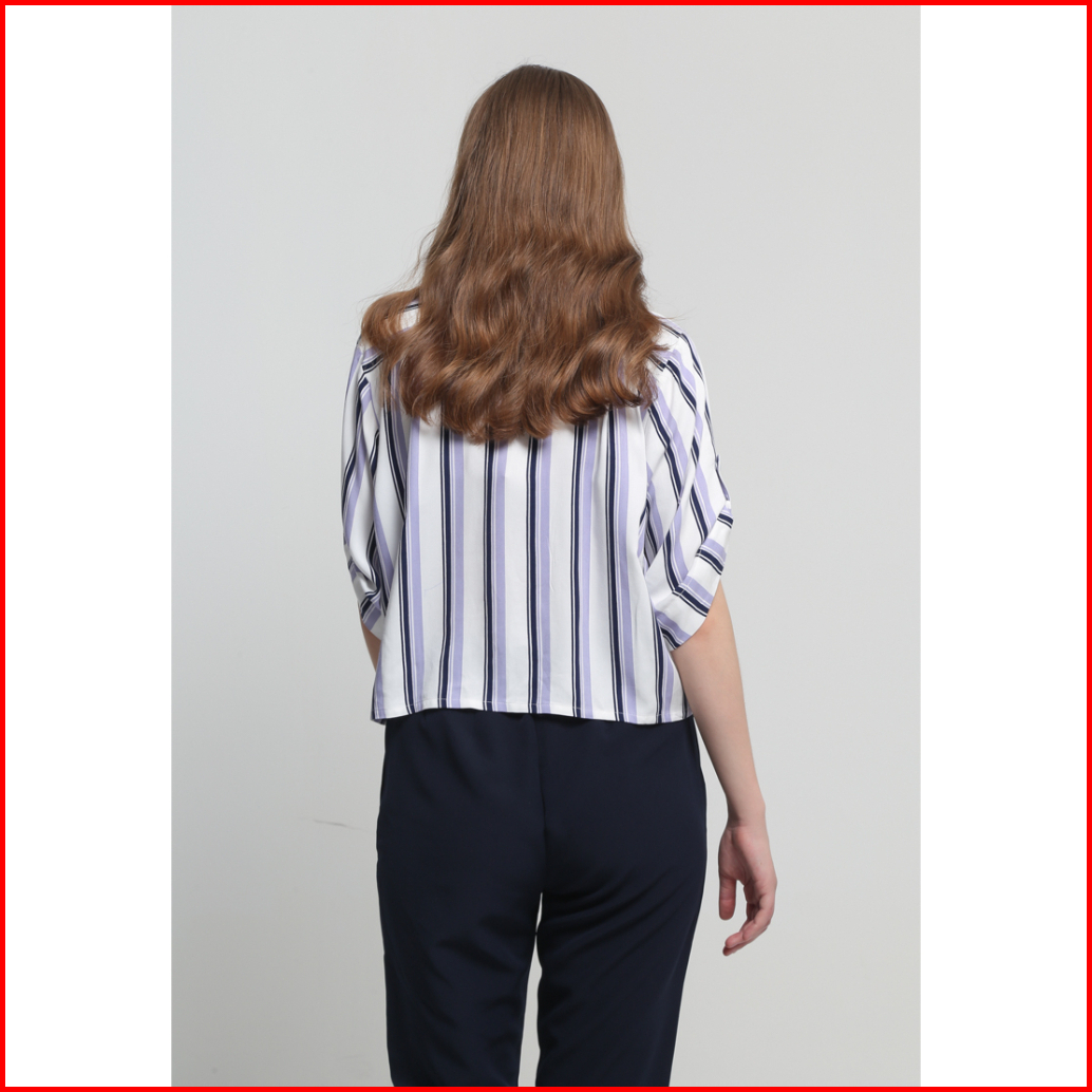 Valino Ladies Atasan Lengan Pendek Wanita Putih Garis Biru Dan Lavender D-befa08-w5