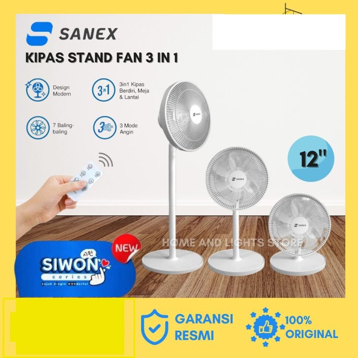 SANEX Stand Fan & Desk Fan SIWON Series 12 Inch SSF-1221 | Varian Remote & Non-Remote, 2-in-1, Desain Modern, Low