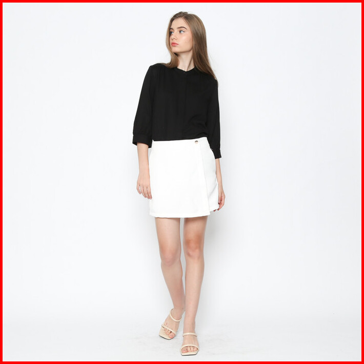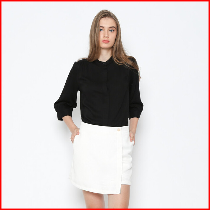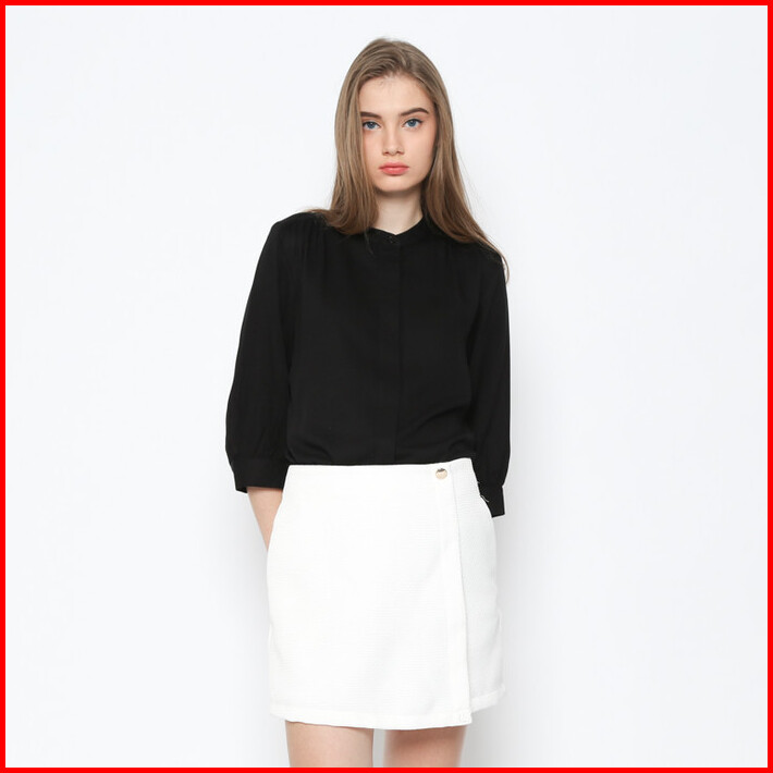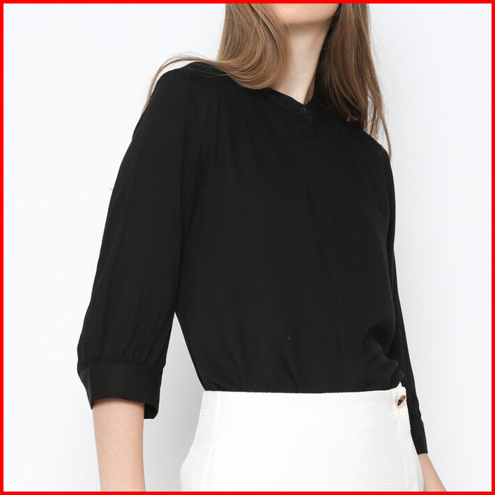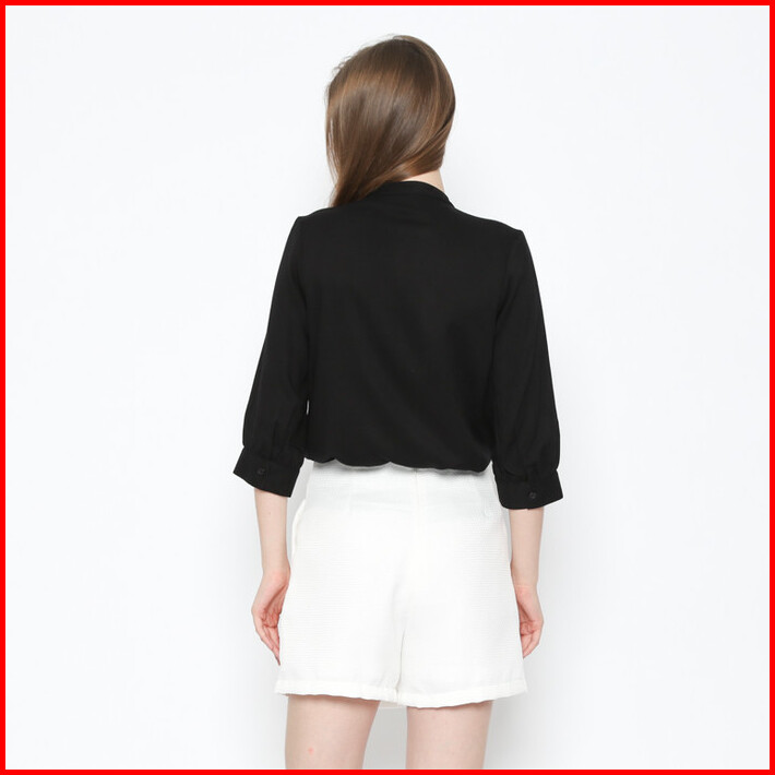 Valino Ladies Blouse Mandarin Collar Hitam Wanita - D-ckfa12-b5