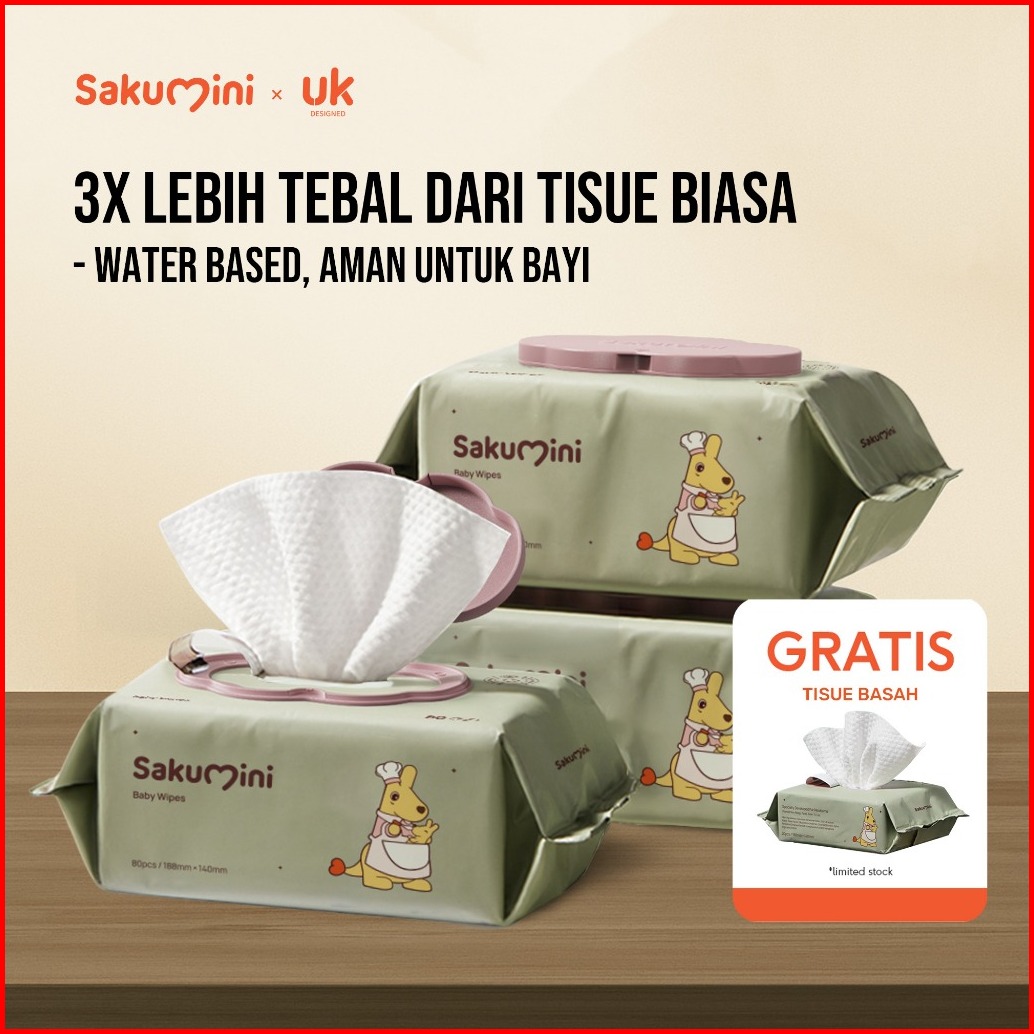 Sakumini Tisu Basah Bayi Wet Tissue Baby Wipes Hand Mouth Facial Tisu Wajah Lembut 80pcs