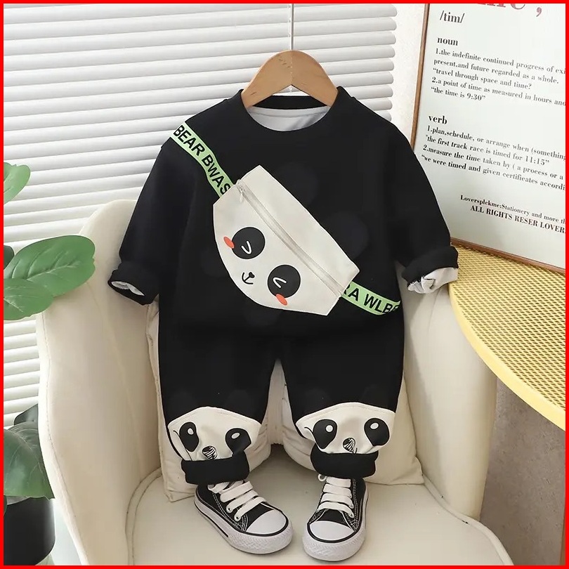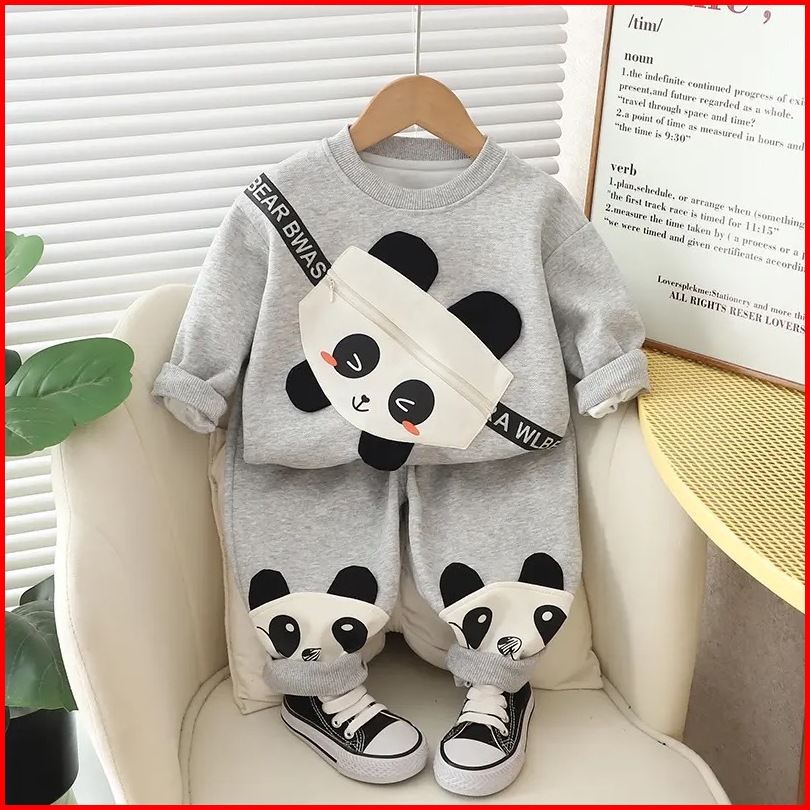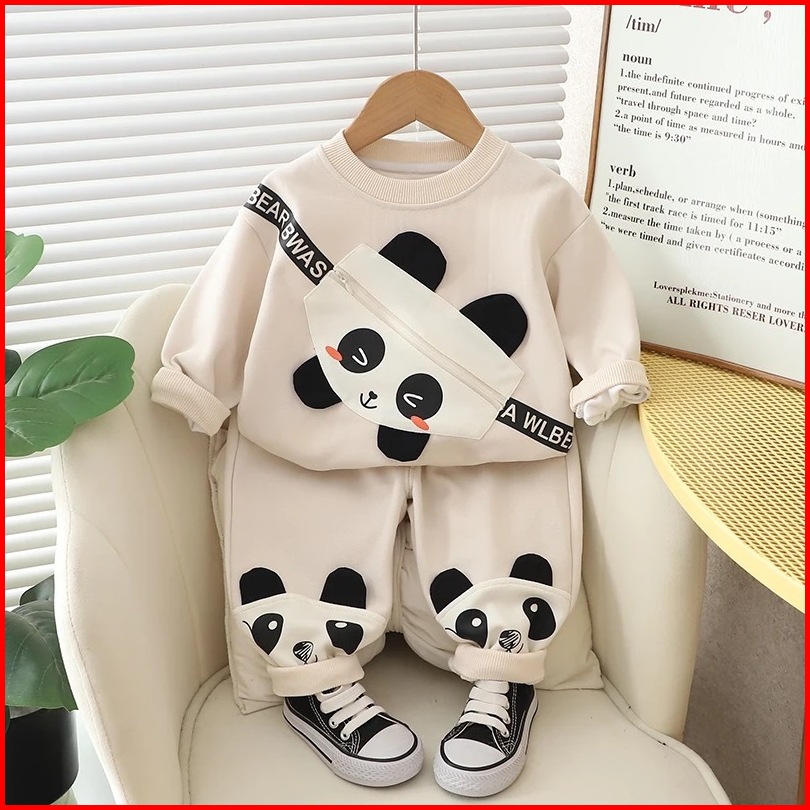 Setelan Baju Anak Perempuan Motif Panda Sweater Dan Celana Panjang 1-5 Tahun