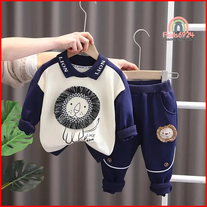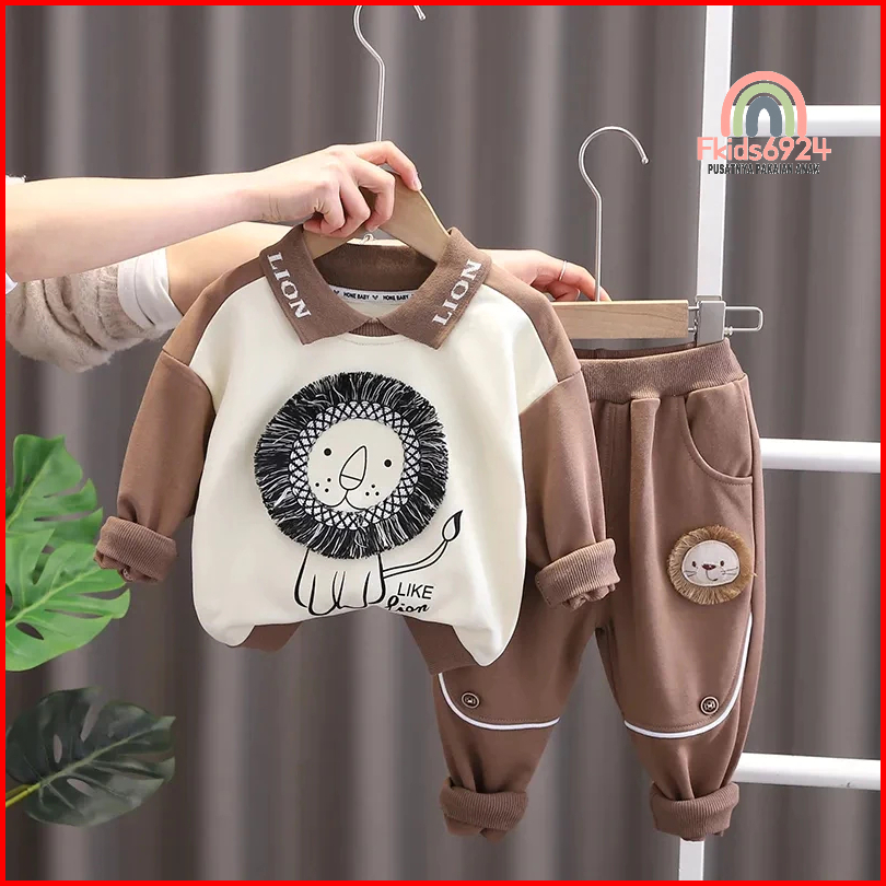 Pakaian Anak 1-5 Tahun Setelan Sweater Kaos Lucu Motif Lion Dan Celana Panjang