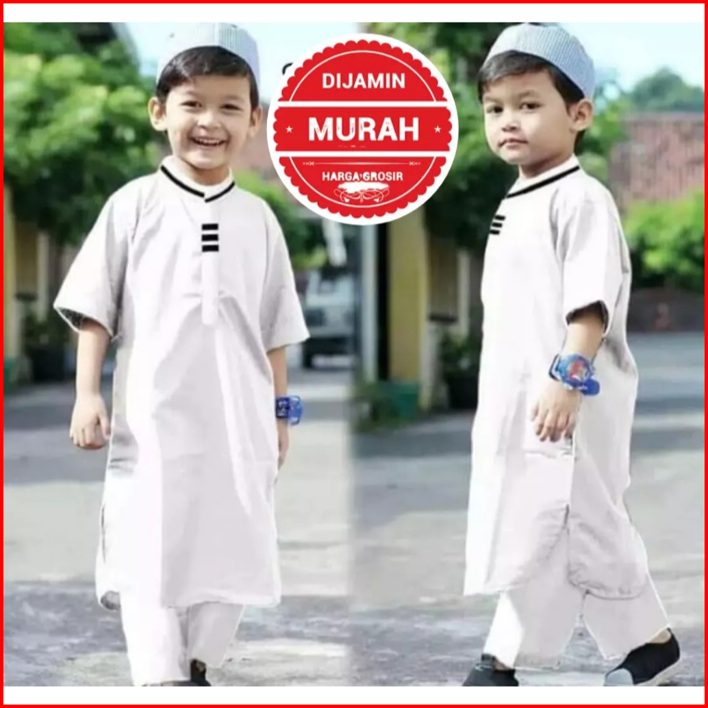 Setelan Baju Koko Anak Laki Laki Putih 1-12 Tahun Baju Muslim Anak